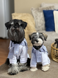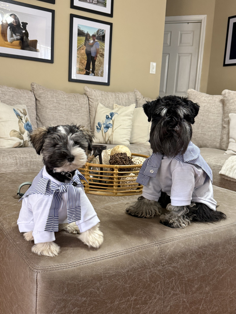 Nico loves plush squeaky toys and belly rubs as his reward. Theo goes crazy for rubber chew bones and peanut-butter treats—perfect for his teething stage. They both share a love for mini training snacks and chasing anything that bounces!
