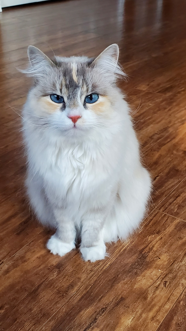 Georgeous and smart, she has a whole repertoire of tricks too! She is a 4.5 year old Ragdoll and her coloring as Tortie, Linux, Blue Mitted.