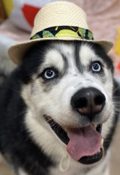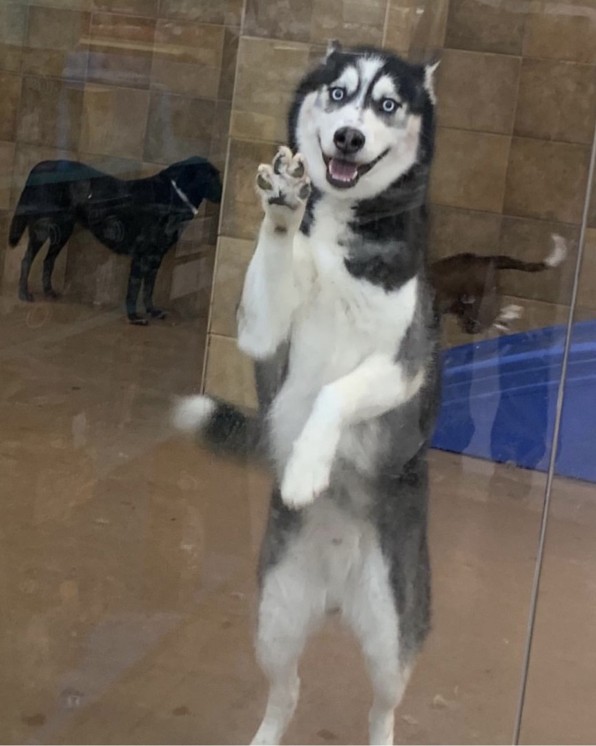 He loves people! a chill husky but has his moments bouncing around.. Very social and loved being around other dogs.