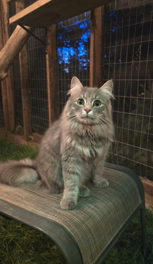 Nimbus is 1 1/2 years old. He's very loving, gentle and polite and shares his home with eight other cats.