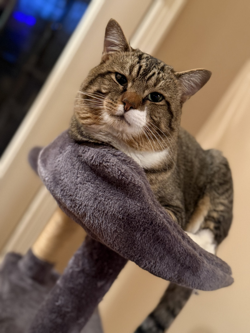 He lets everyone carry him like a baby, pet him and kiss him. (Most cats don’t like that and don’t let themselves)