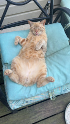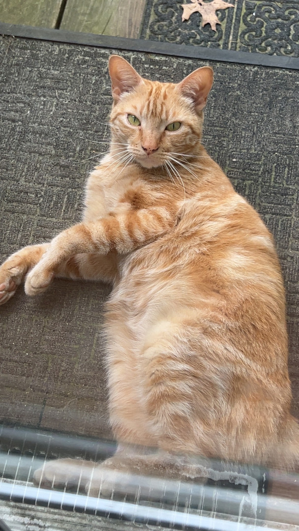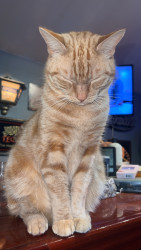 He’s your typical orange cat. Ornery and LOVES attention