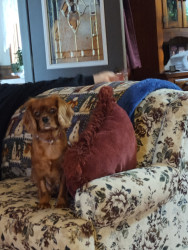 She's adorable and loving even after she went through three years of hellish living. Thank God they gave her up and I was the lucky one to adopt her. Cuddling is her most favorite thing to do as well as shadow me, no matter where I am, bathroom included lol. She plays well with my grand dogs, no ugly behavior. She can be stubborn, but we all can at times. She's a little princess and knows it.