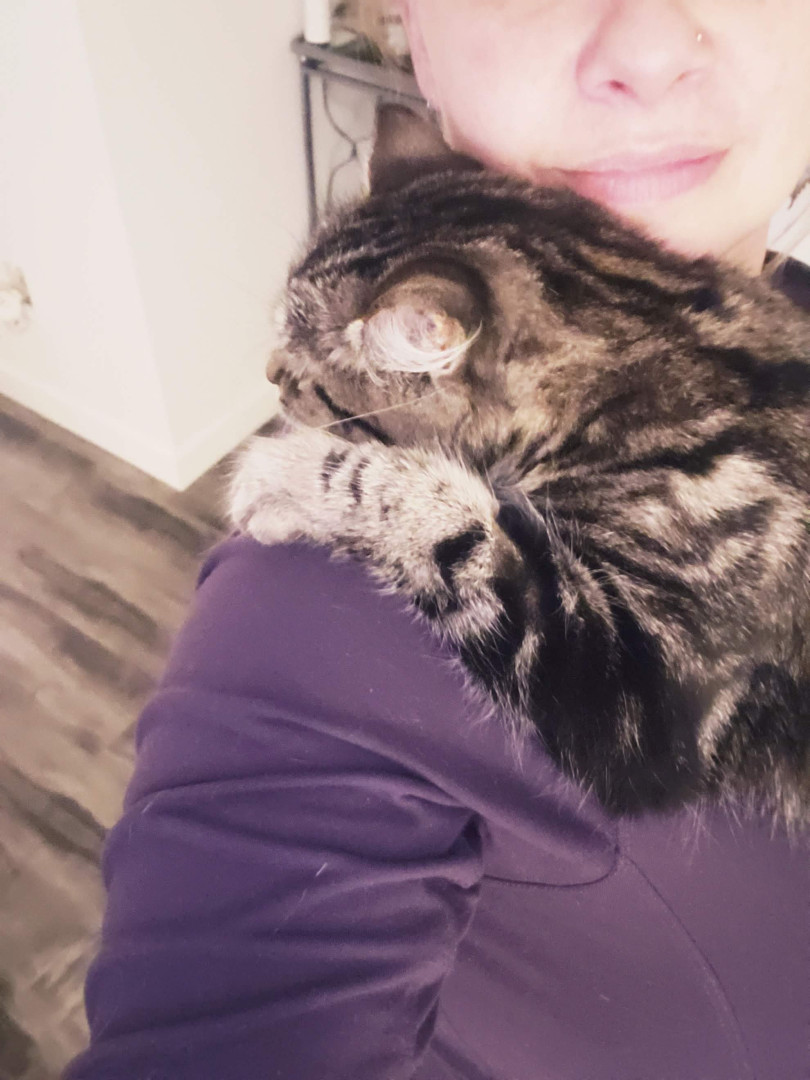 Her love for everyone! Even though her start in life was very traumatic, this lil kitty shows everyone so much love! She gives the best hugs!