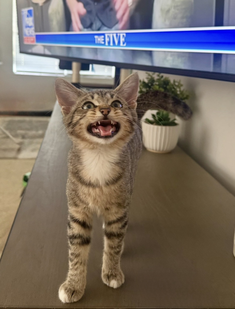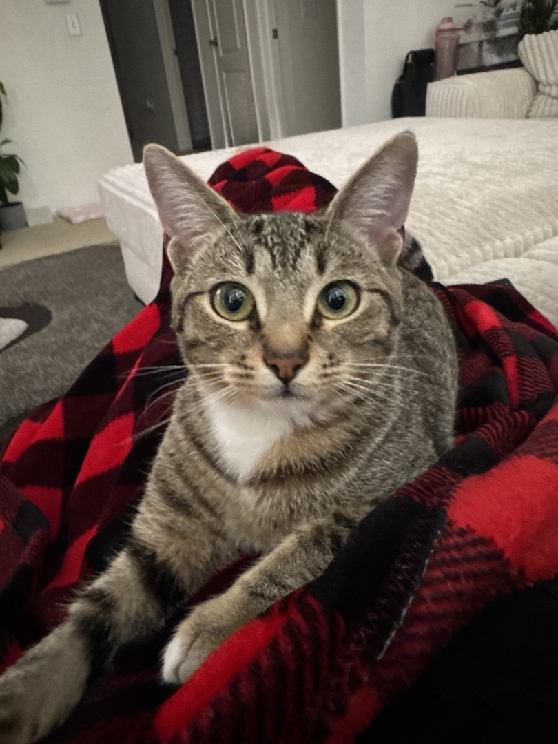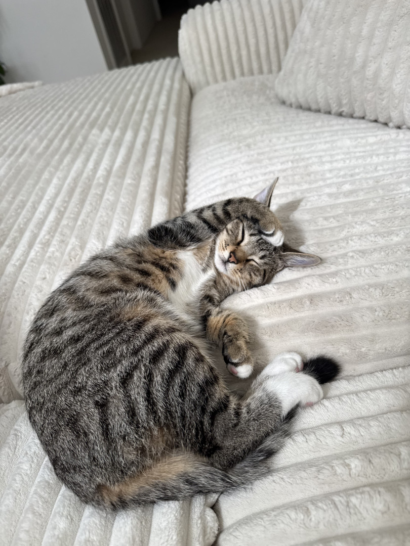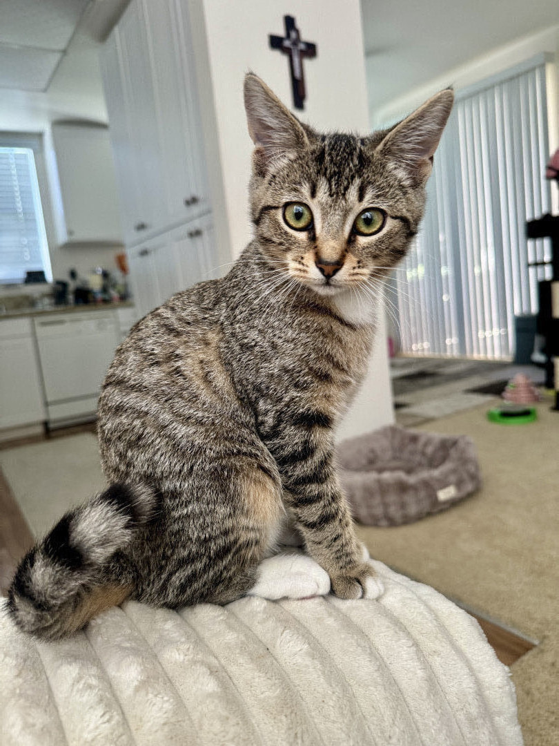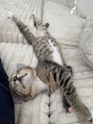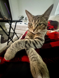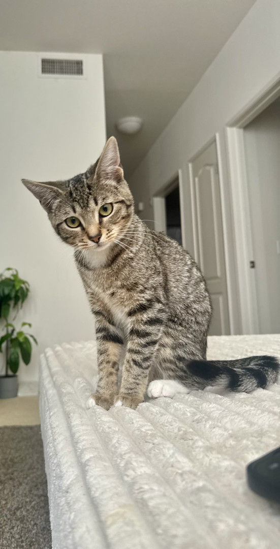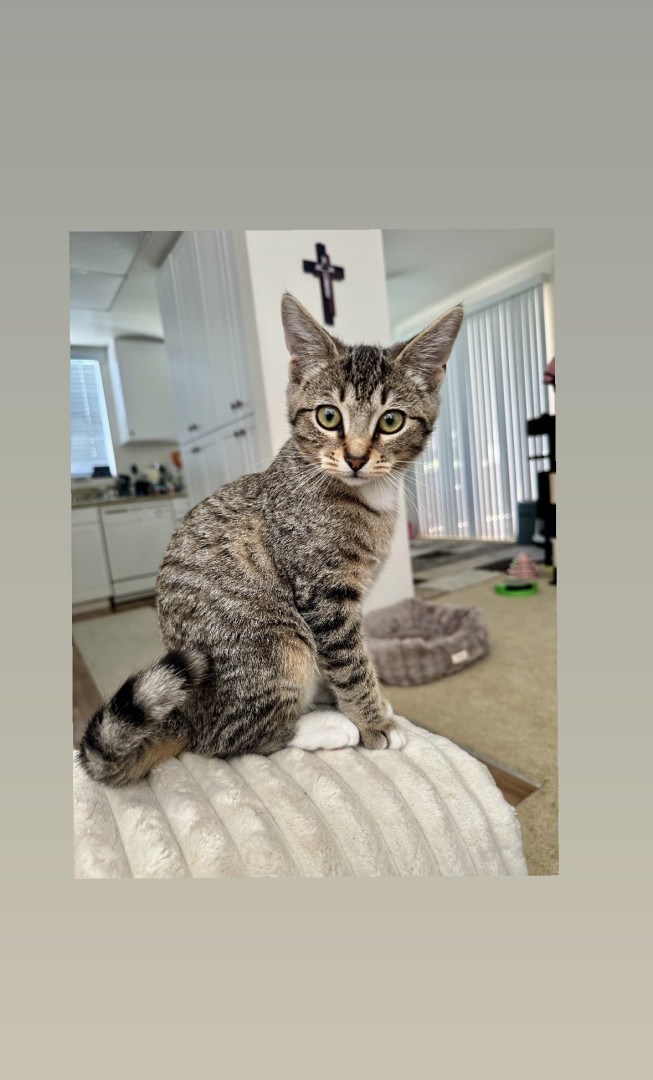 A soft, striped sweetheart with a feisty streak—my playful 6-month-old tabby keeps life fun, loud, and full of zoomies. 🐾🔥