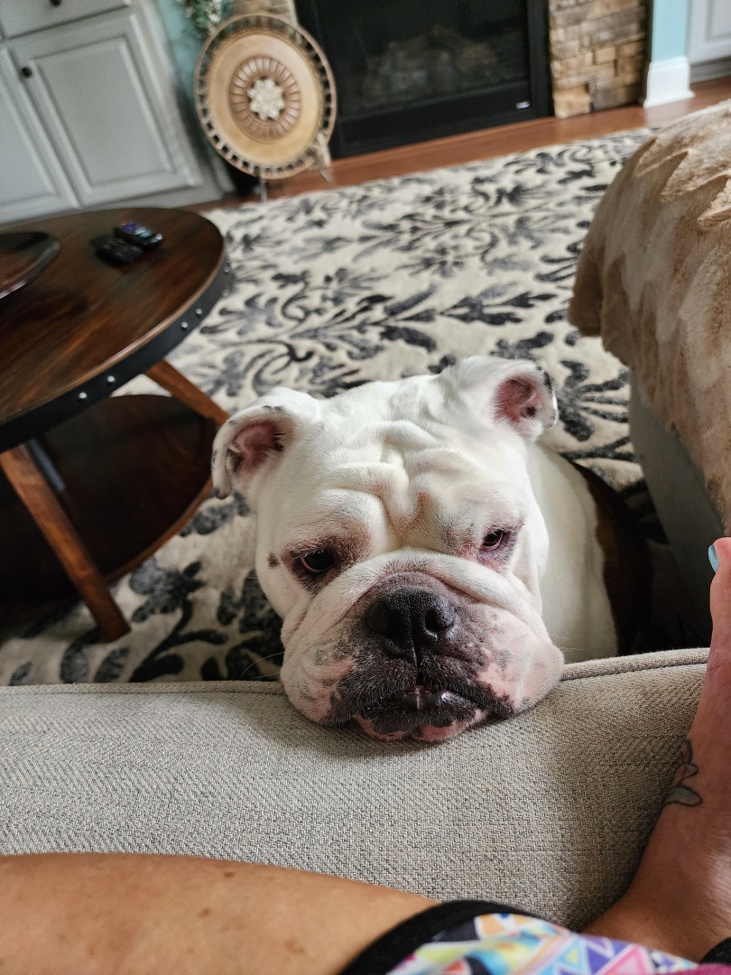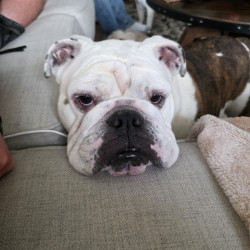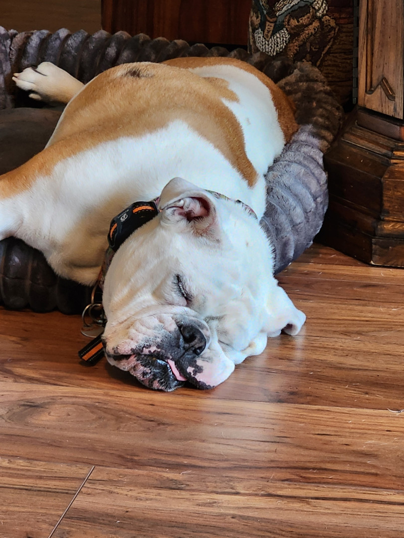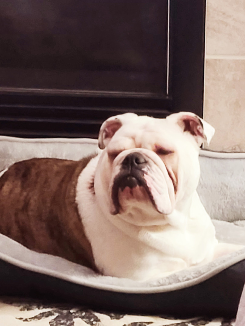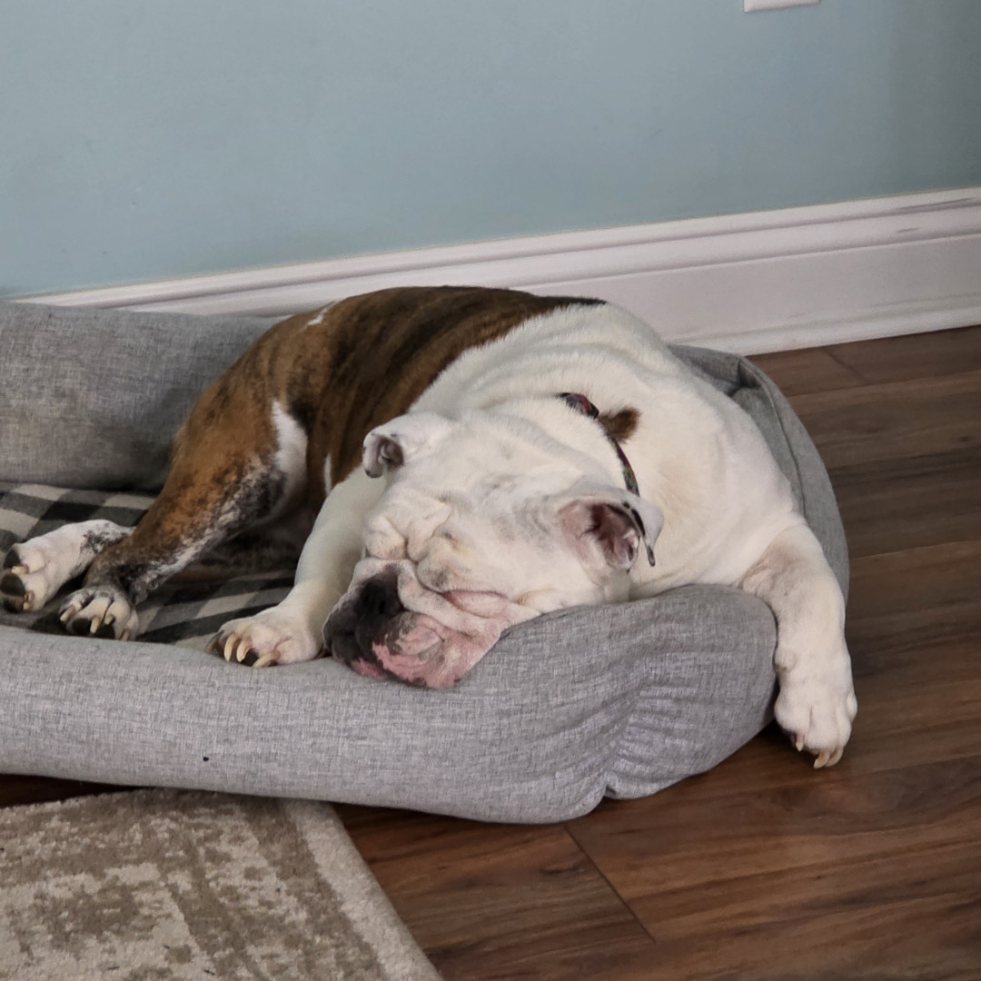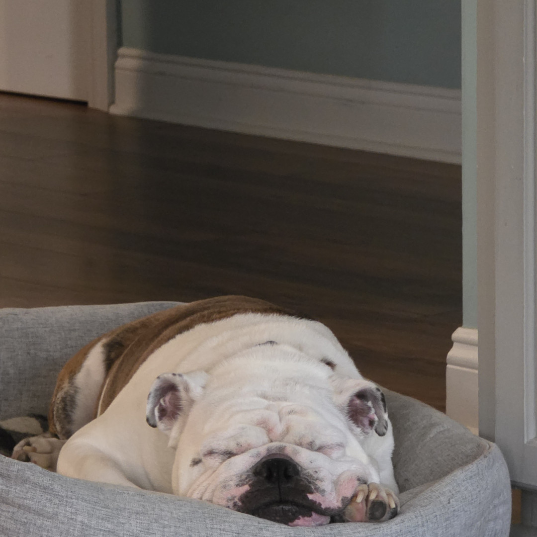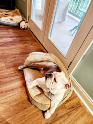 Nola is a 5 year old english bulldog. Her favorite activities are napping and an occasional snack and then more napping.