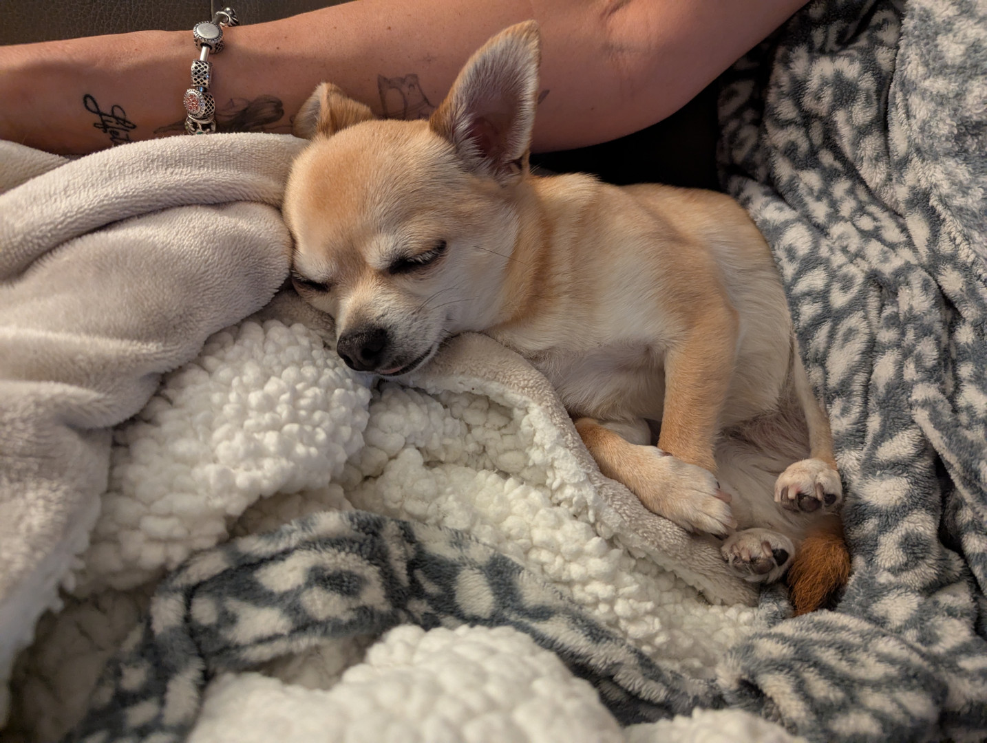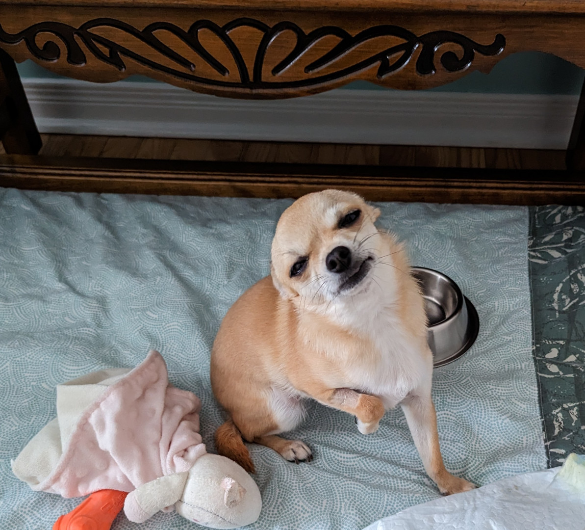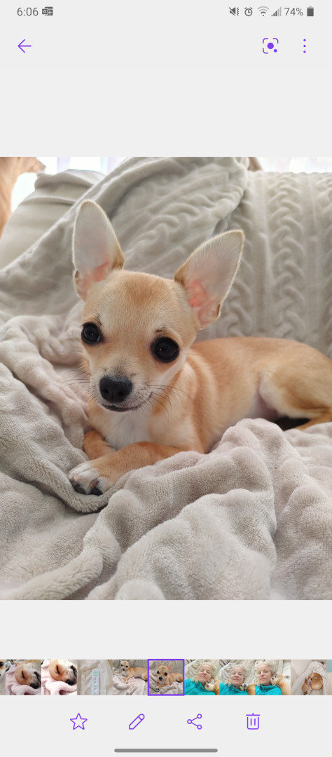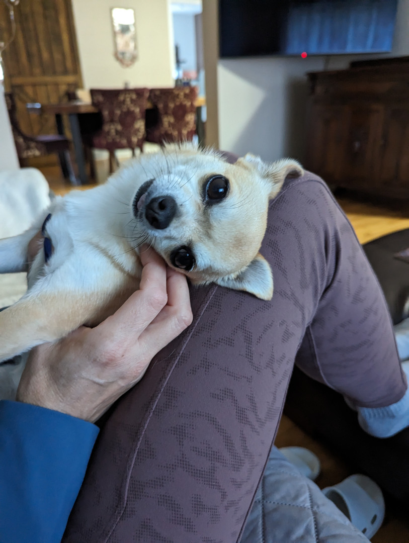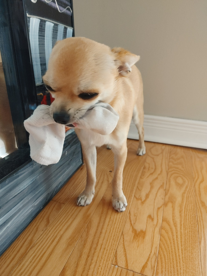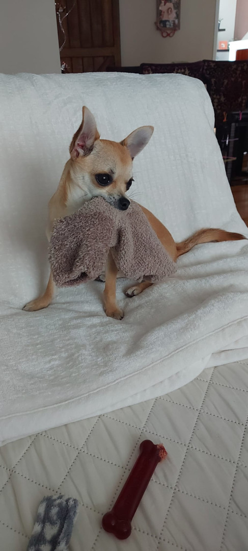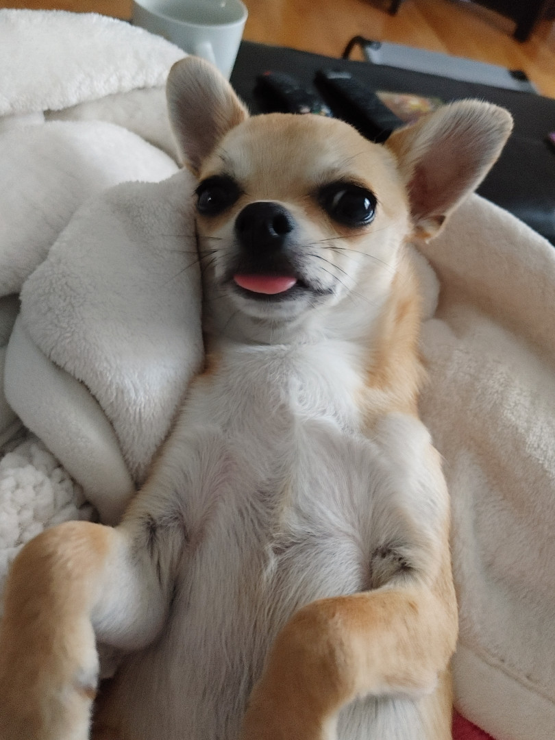 Noodle is the funniest little clown who is an absolute runt of the litter. She loves attention. She is a tiny Chihuahua with a big heart.