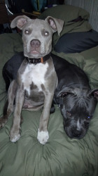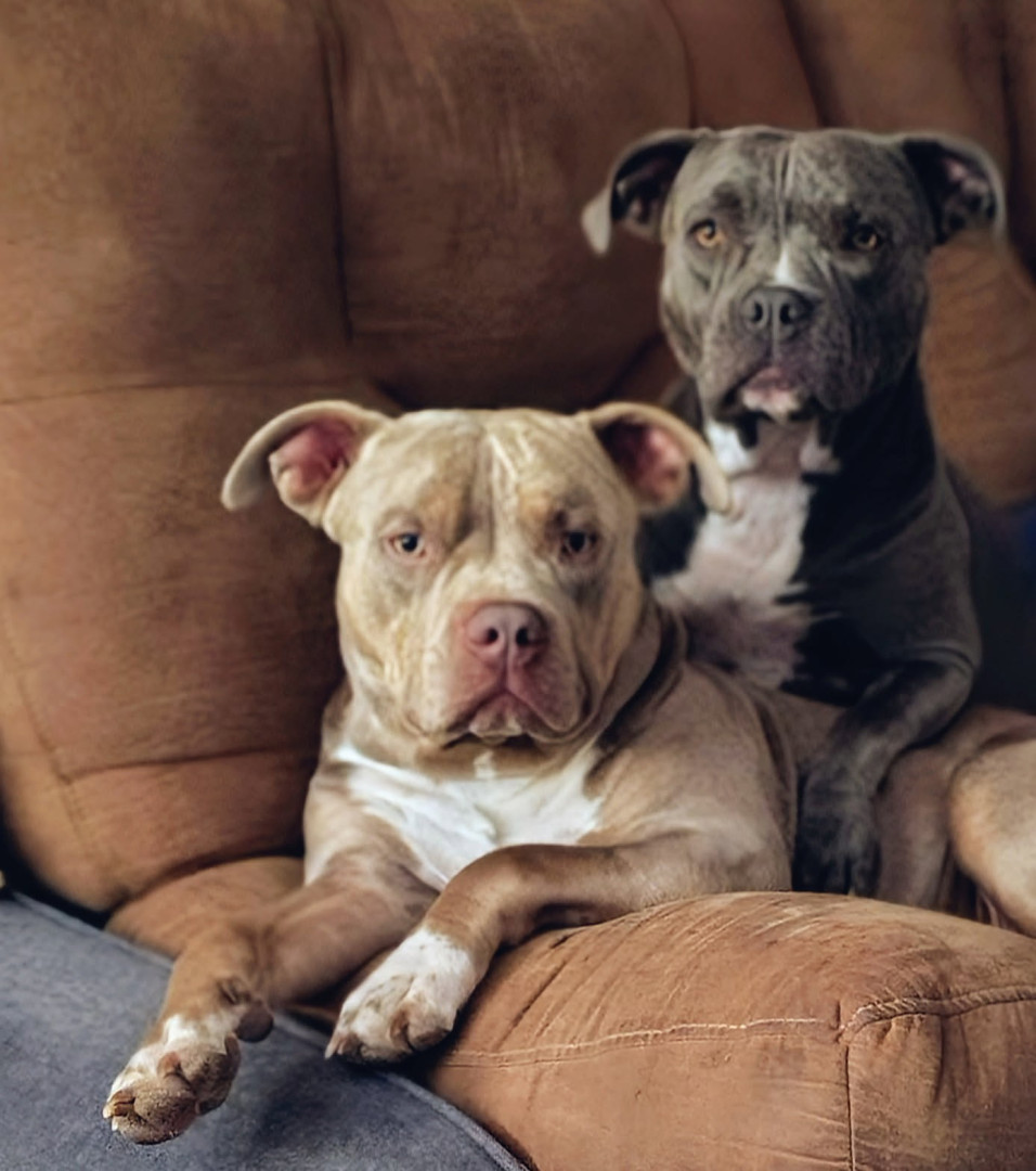 These two beautiful pitties are the best dogs I've ever been blessed with! Nora is older and chill while Tripp is hell on wheels!