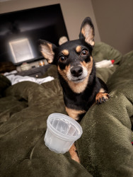 When she wants a treat or ice cream she brings the cup or toy straight to me. She uses her head to show me she wants the other end. She doesn’t let anyone but family get near me until She trusts them.