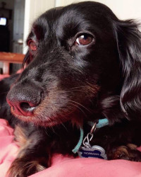 15 years young, silly, sassy, and a devoted chicken connoisseur who still loves to run with his baby.