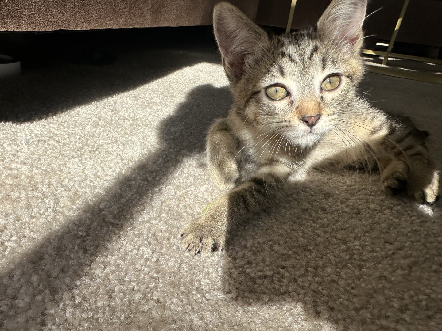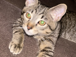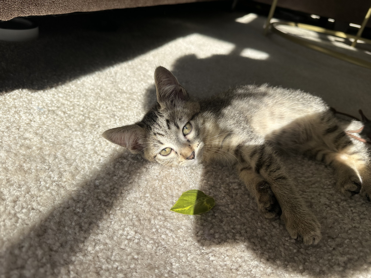 Nova Jade has an unhealthy obsession with carbs and will attempt to steal bread at any opportunity, despite being on a strict cat-food-only diet. Her approved favorites are tuna (any form), salmon & cranberry treats, and her beloved toy, Snakey, which she got at the shelter and still sleeps with every night.