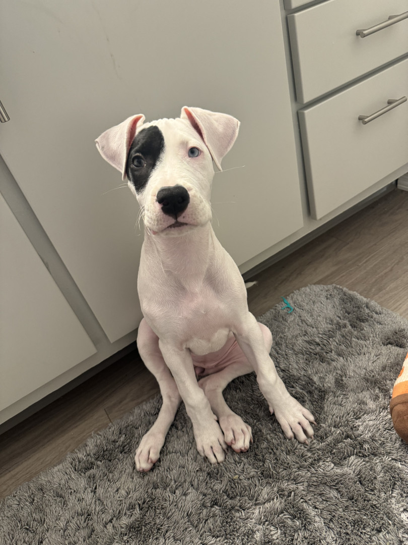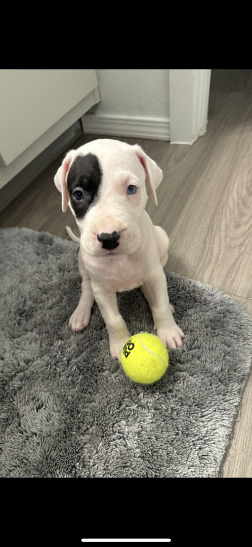 My Nova girl is a year 1/2 old Dogo Argentino puppy. She is 100 pounds of pure love & energy. She loves everyone & has a face most cant deny