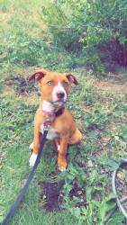 Nova is a 8 month old pitty/lab mix she is such a sweet and caring girl she loves everyone she meets along the way.