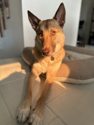 Nova’s most unique quality is her intelligence and resilience. She’s overcome past reactivity through training, patience, and trust. Her high energy and bravery make her the perfect adventure partner. She even features a perfect natural winged eyeliner, adding to her beauty.
