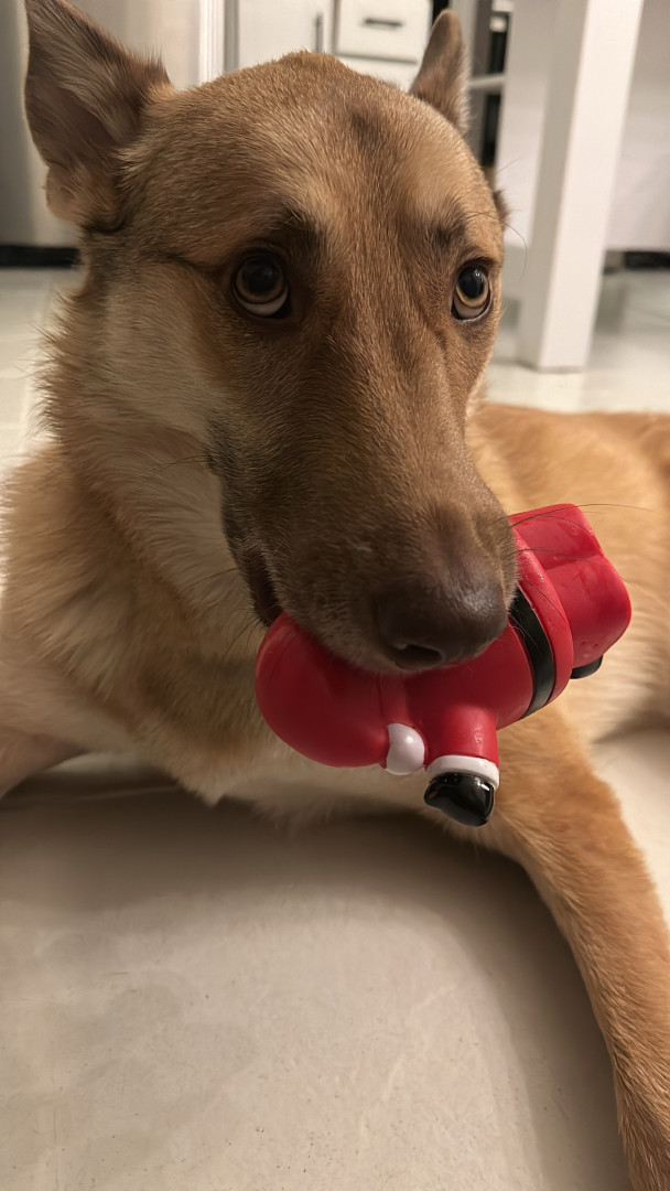 Receive Text UpdatesNova loves enrichment toys that keep her busy; treat dispensing toys and puzzle feeders, anything she can “work” for. Sometimes even shredding a box or a water bottle works! Her go-to treats are simple, single-ingredient proteins, especially freeze-dried meats.