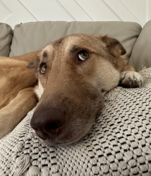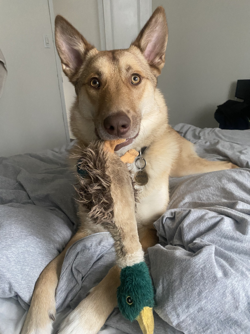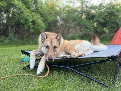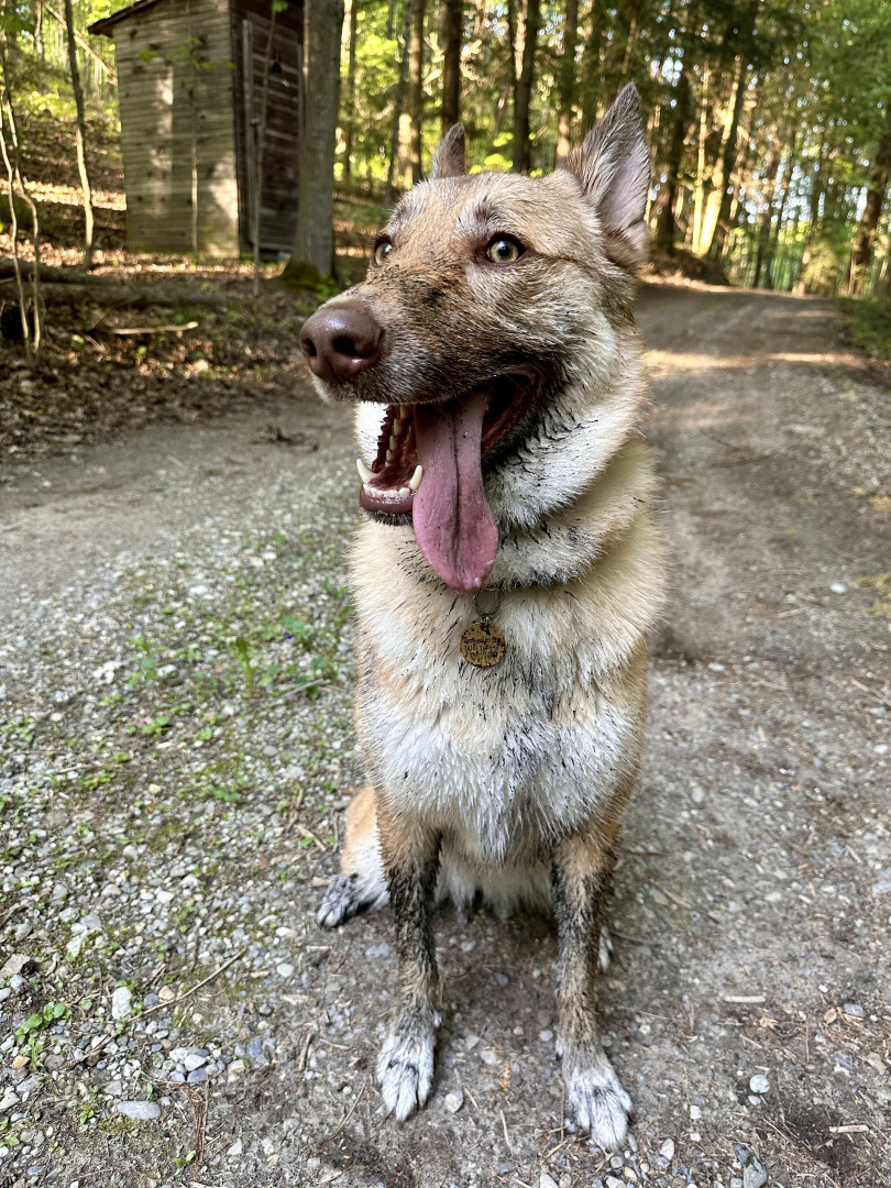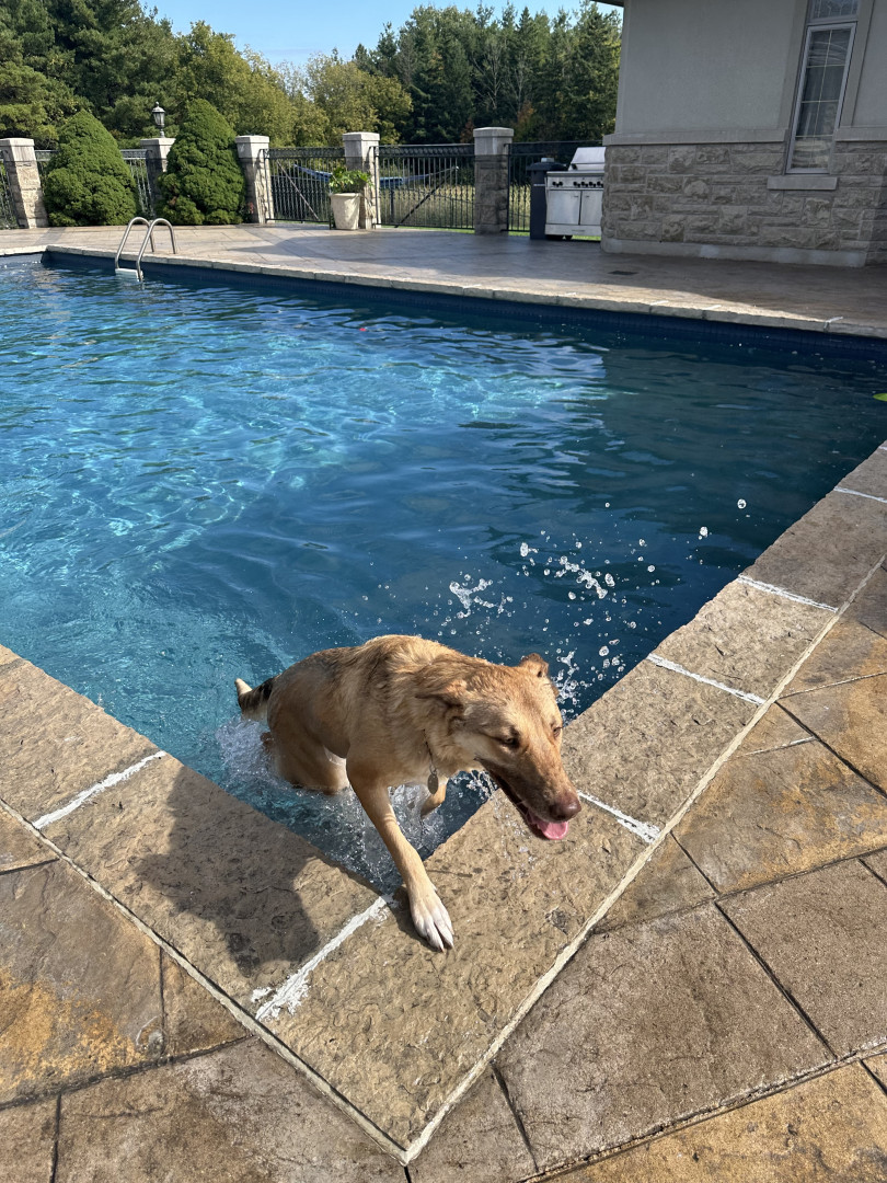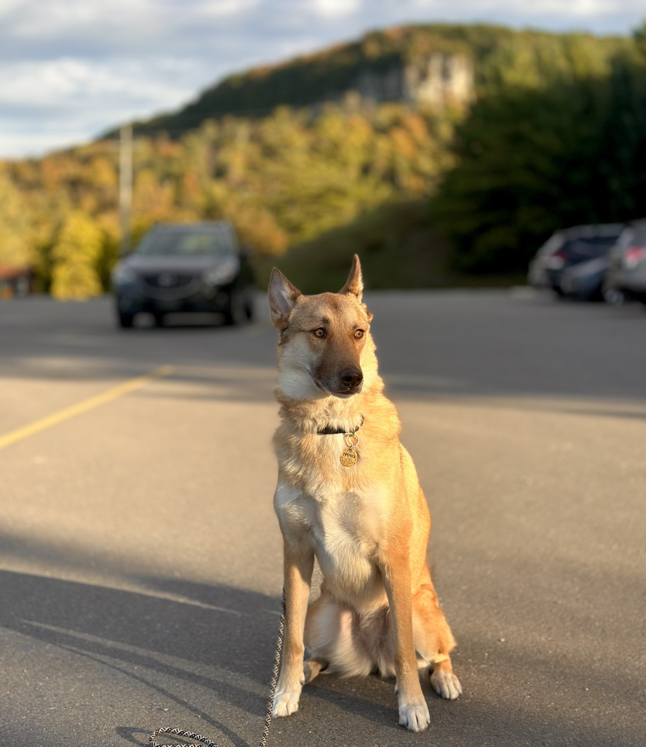 Nova is a Northern Manitoba rescue, shepherd–husky mix. She is adventurous, social, and happiest hiking, swimming, and exploring outdoors!