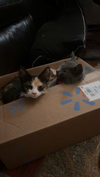 Her favorite thing to play with is grocery bags and or any box she can find. Her favorite treat is chicken or beef flavored wet treats