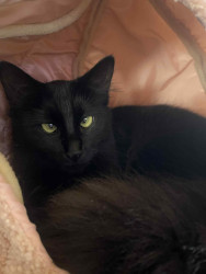 Rescued at one week old, she's a bottle fed kitten, she's cross eyed, she's silly, lovable, curious, she's all around a good kitten