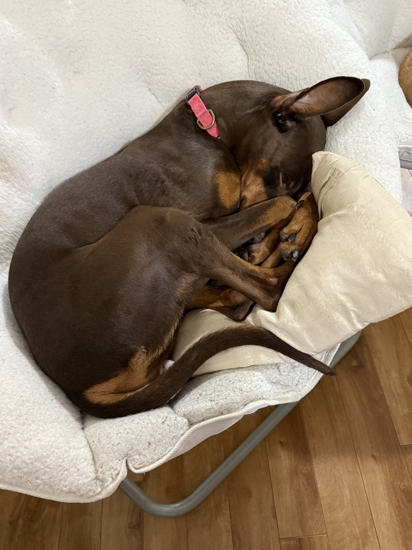 Nova is the most gentlest loving Doberman I’ve ever seen. This breed often gets a bad rep, but we are here to show that Dobermans are loyal, intelligent and super sweet and loving!! She’s perfect to us.
