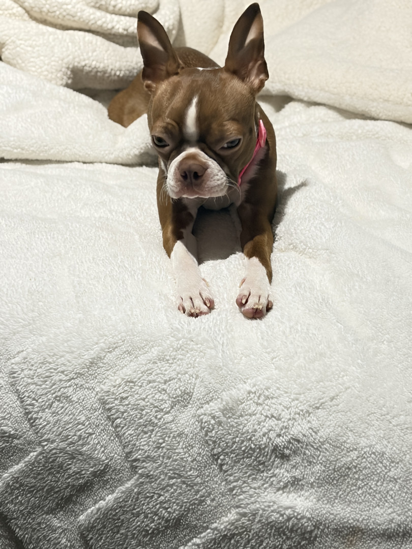 Because you can’t look at her cute face without smiling! I got Nova two months after losing my dog Izzy (who truly was my soul). I didn’t think I was going to be okay after losing Izzy, my other dog. Cooper was so sad after Izzy's death, and I knew I needed to get him a friend, so I drove 16 hours round-trip to pick up little Nova. I couldn’t be happier with my decision on getting her. She has so much personality and is constantly making me laugh. She helped mend my broken heart!