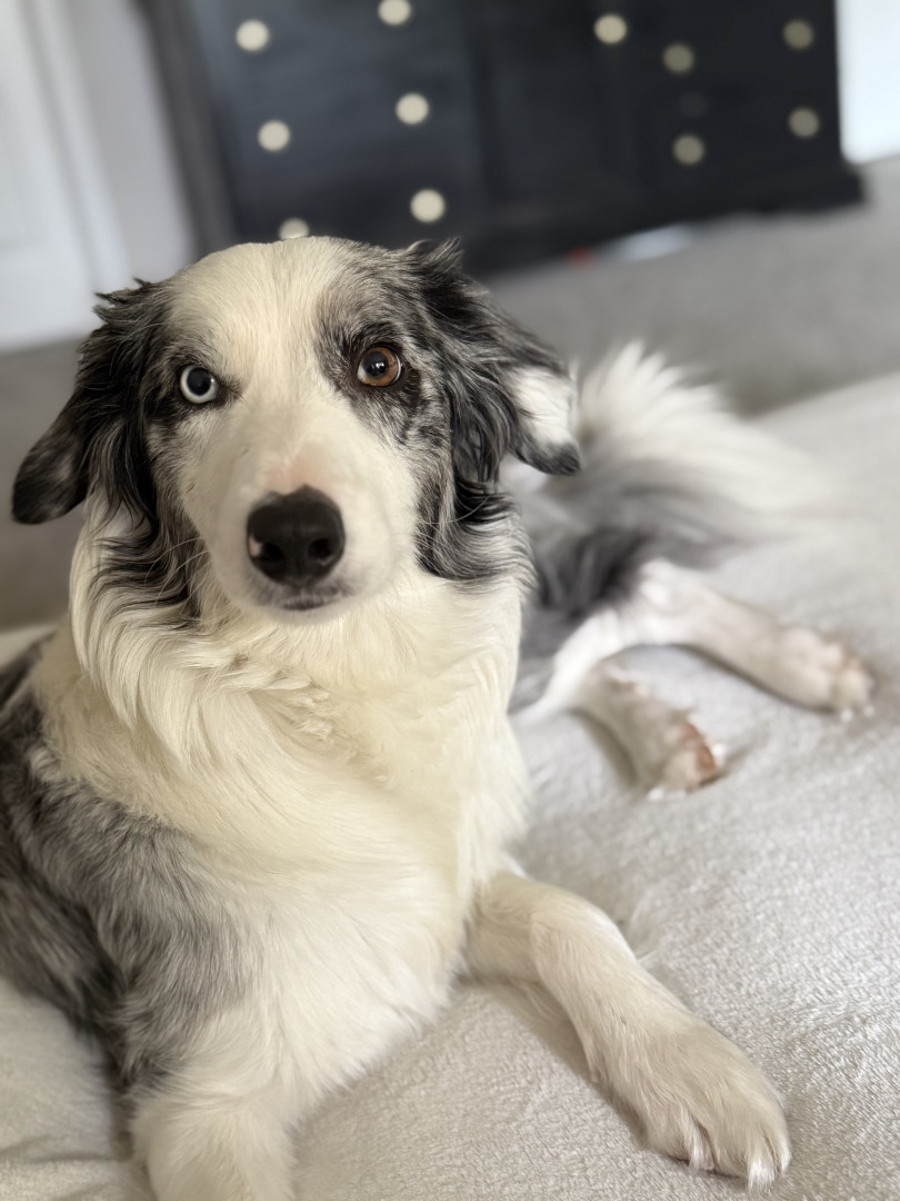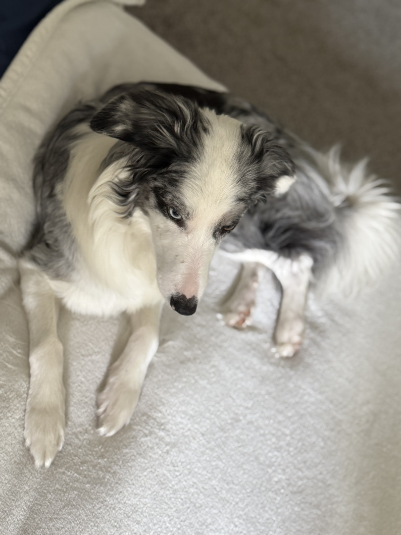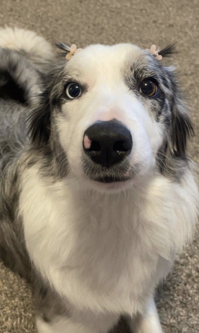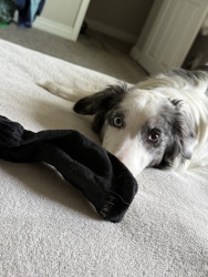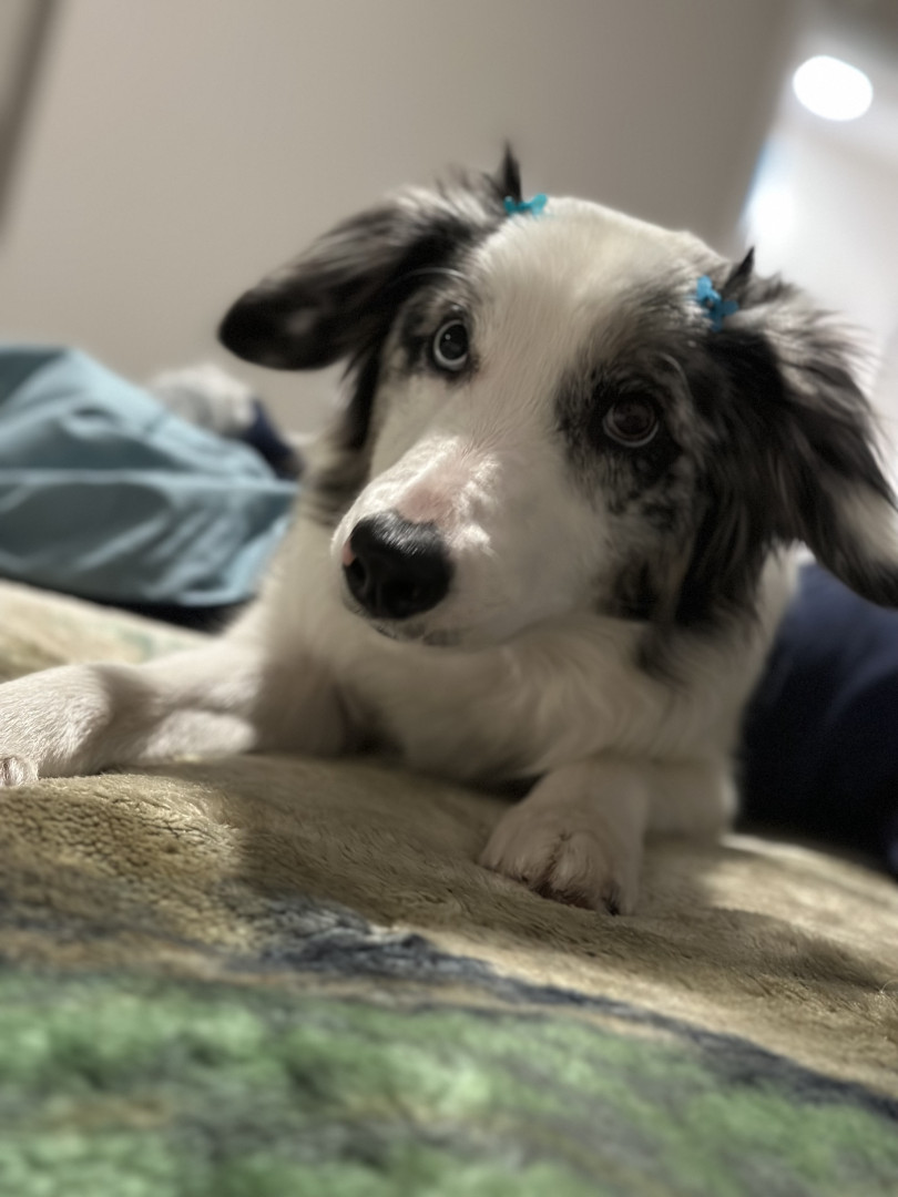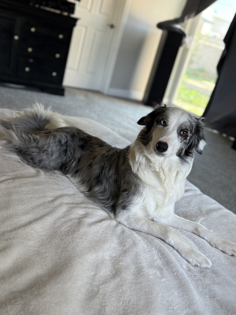 Novalee is a Blue Merle Border Collie,She is Three years old. She loves socks & String Cheese!