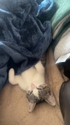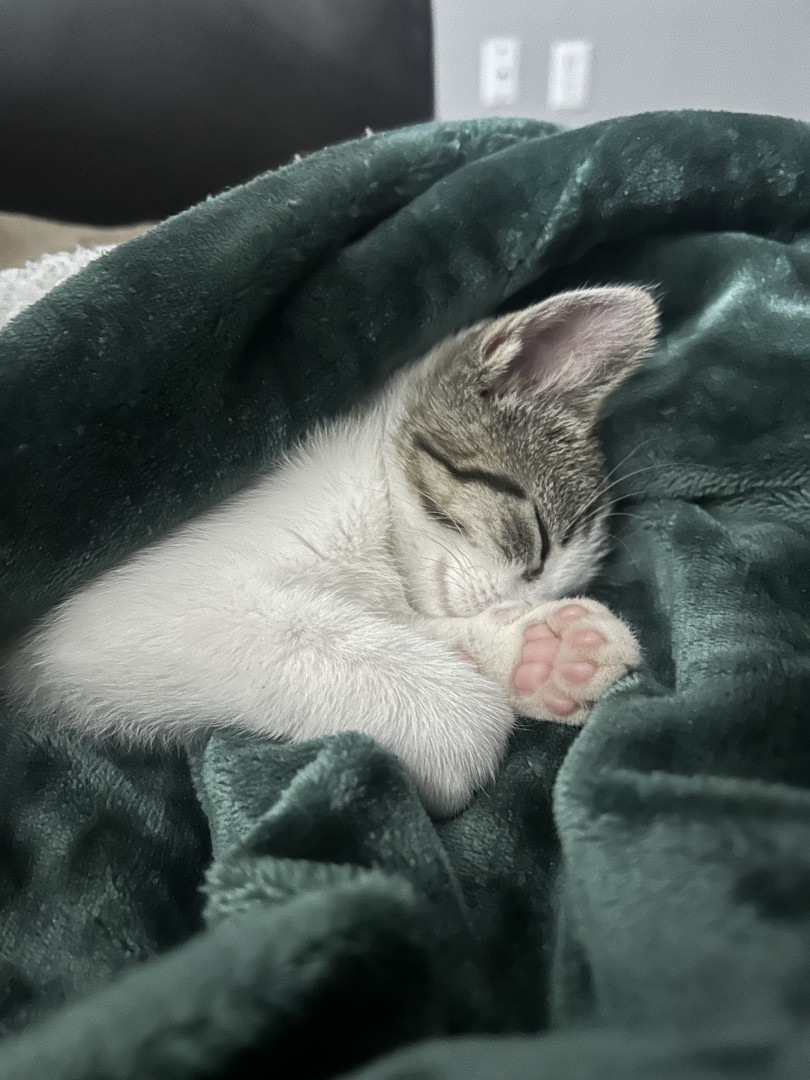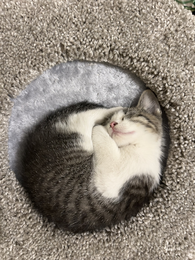 You’ll never know what to expect with her. One second she’ll be lying on your chest and the next thing you know is she’s running to attempt climbing a wall. Her favorite thing is hiding around a corner and waiting for you to walk by so she can jump out and scare you.