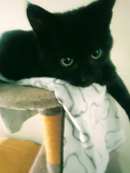 Nubia is an adventurous and loving cat. He loves to chase his toy balls and he even plays with his own tail. Nubia also enjoys his food!