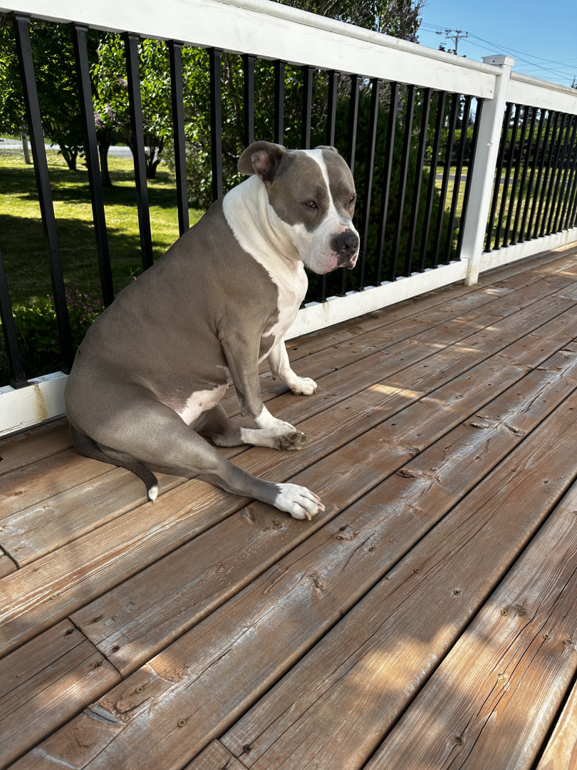 Nyah is a 4 year old American Bully Breed that loves children, puppies, walks, swimming and her family. Shes a real couch potato