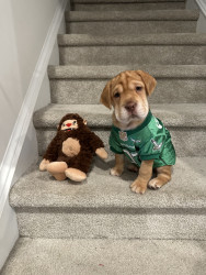 Learn MoreHer favorite toy is a tug of war rope or her elephant ball/stuffie. Go to treat is a pig ear or duck feet.
