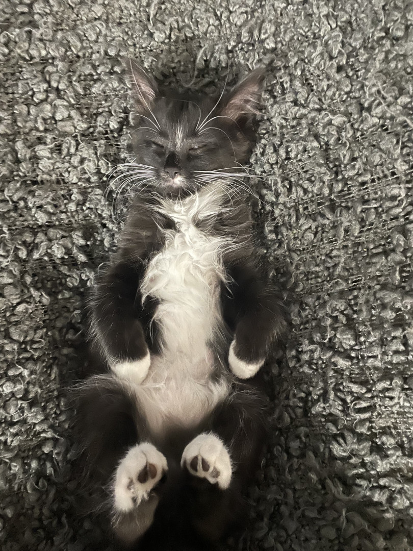 She’s a very dominant cat. We also have a Maine coon, but Nyxie is the most dominant, and wins any fight they get into. But she’s the sweetest cat you’ll ever meet when tired