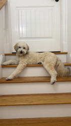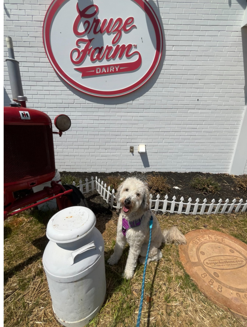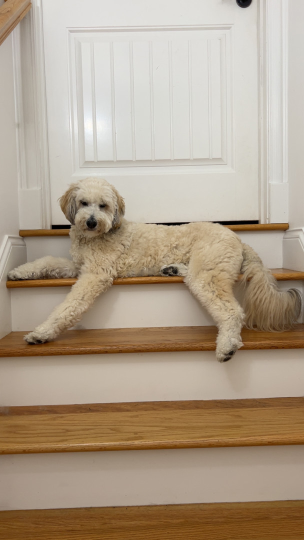 How much her hair has changed as she has gotten older. She doesn’t even look like the same dog. Started out black and brown now is cream with black on the tip of her tail.
