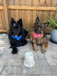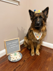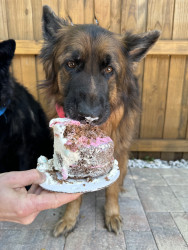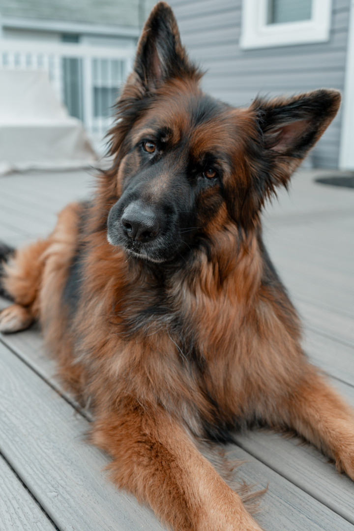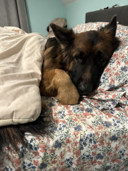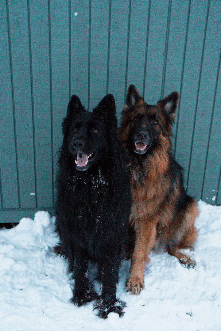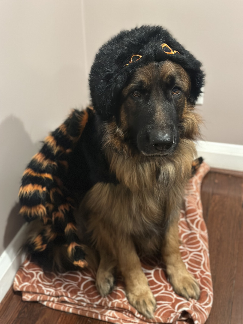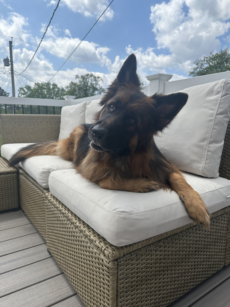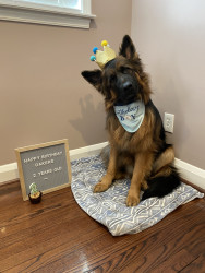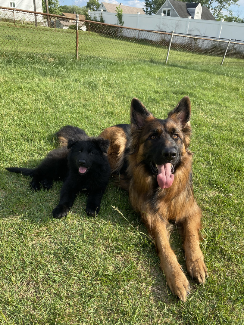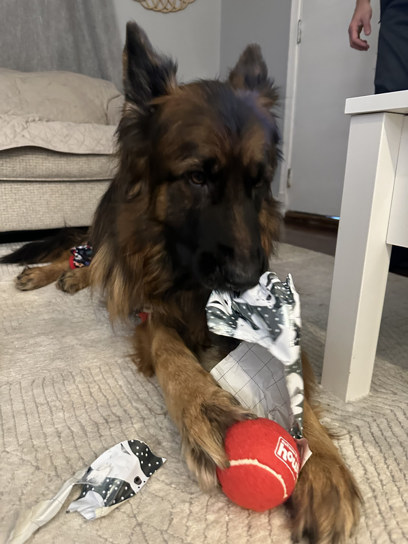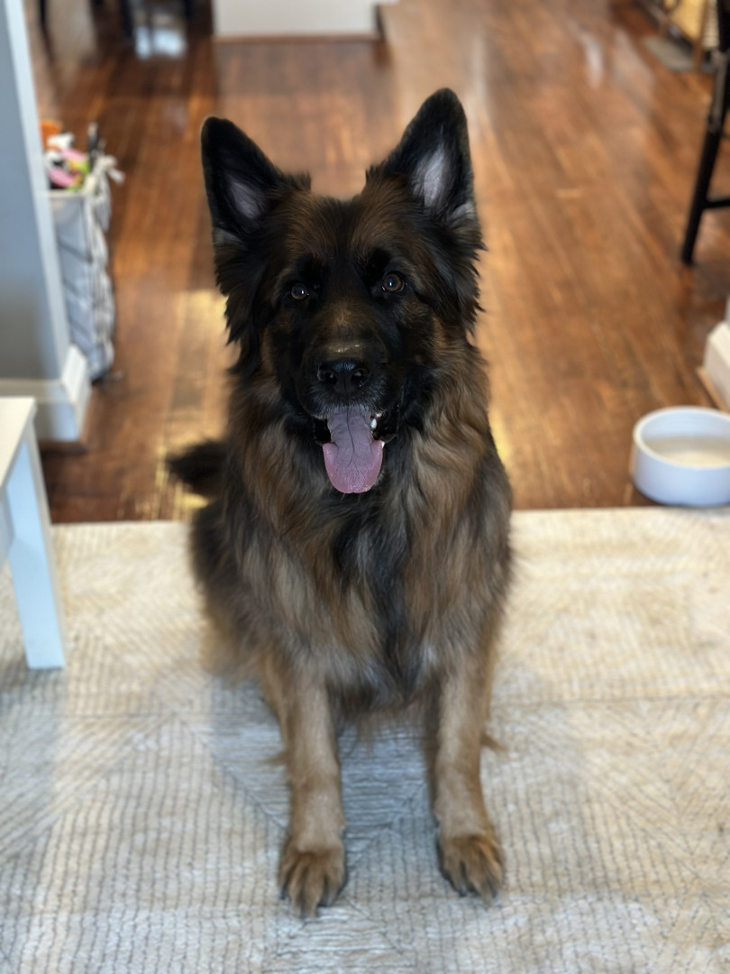 I am a long haired black and red German shepherd. I love playing fetch, going on walks, doing trickos, and cuddling with my family.