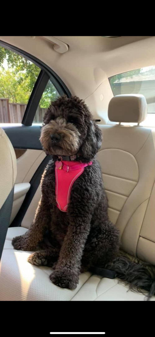 Her name is Alley, she is a 8yr old Aussiedoodle. She is so sweet, loves playing ball and loving her family