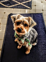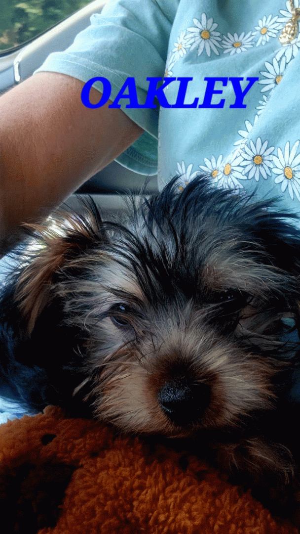 Oakley is a spoiled 8-month Yorkie! He loves lots of things, but his absolute favorite is playing fetch and seeing his daycare friends.