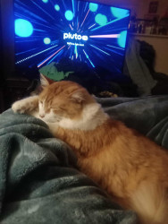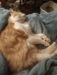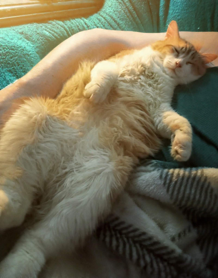 He is all around goodness. Funny 🤣 , smart 🤓, and cute 🥰 all rolled into one big floof of orange and white fur. He loves all animals big and small. Everyone and every pet he meets falls in love with him as well. He likes his food in a pile he can lay on while he eats, so no sister cats get any of his lol. He entertains himself and his humans on the daily. He has brought love and joy to our home and just the pure image of him could bring joy to other homes as well. He is a special guy.