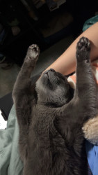 Receive Text UpdatesWell obsidian is interesting and his favorite toy is crafting beads. He’ll put them in his mouth, throw them, grab them with his toe beans, hide them, sit on them and try to bunny kick them. His favorite treat is anything left out of the fridge like a stick of butter.