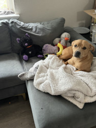 Octavia is my colorful little tornado of energy. She parties hard and naps harder. Everyone loves my little colorful snuggle bug.
