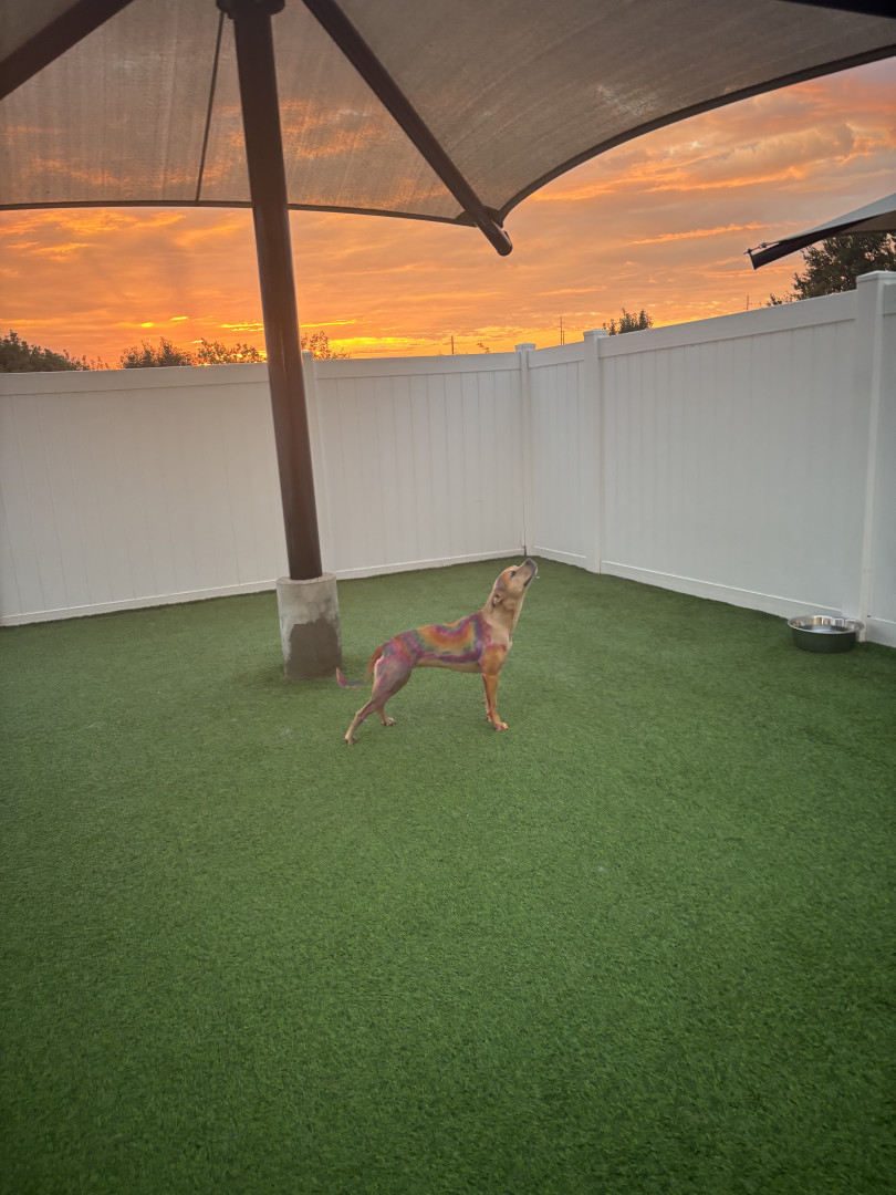 She is my rainbow baby you’ll always see her with a colorful makeover. And she can run up walls.