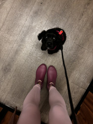 she’s very sassy , gives dirty looks, side eyes, got her a sassy girl harness so everyone knows!