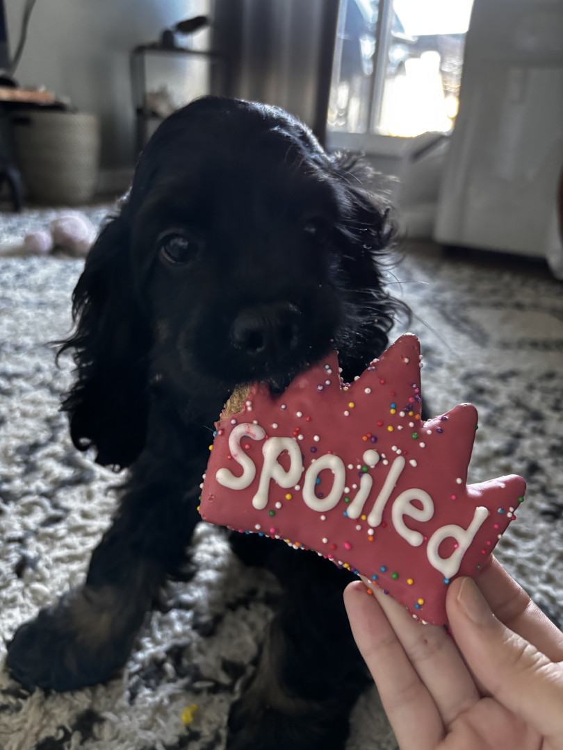Learn Moreshe loves her ball! have to throw it consistently or she’ll show her sassy side ! haha she also loves beef liver and some beef chew sticks while watching tv!