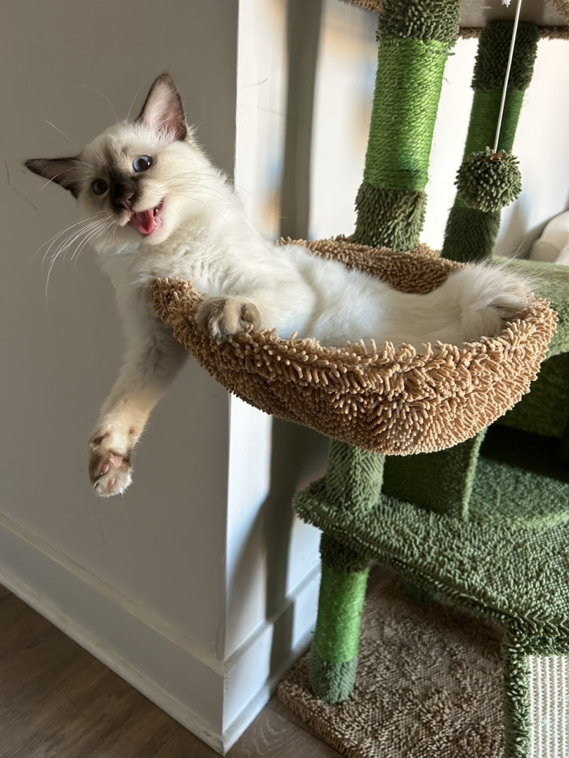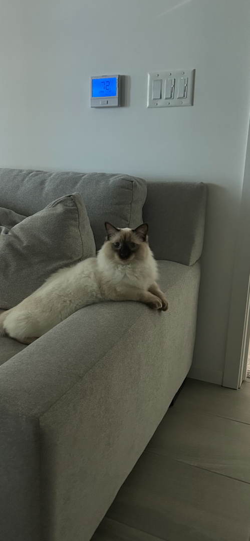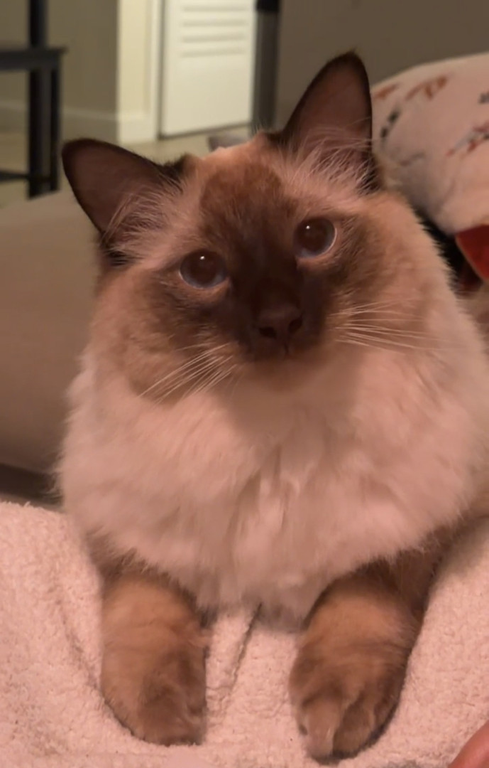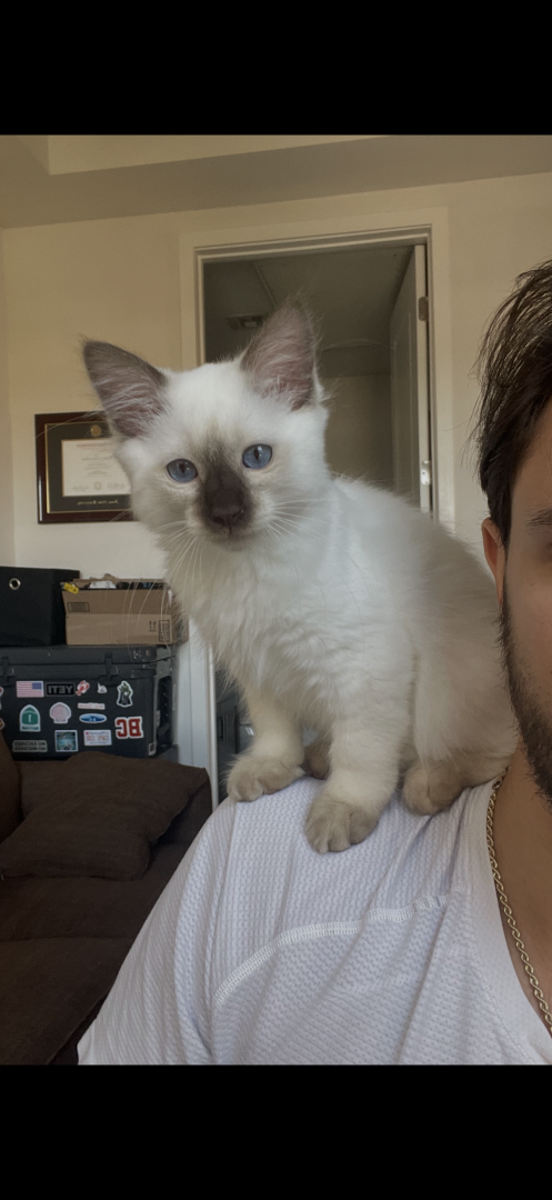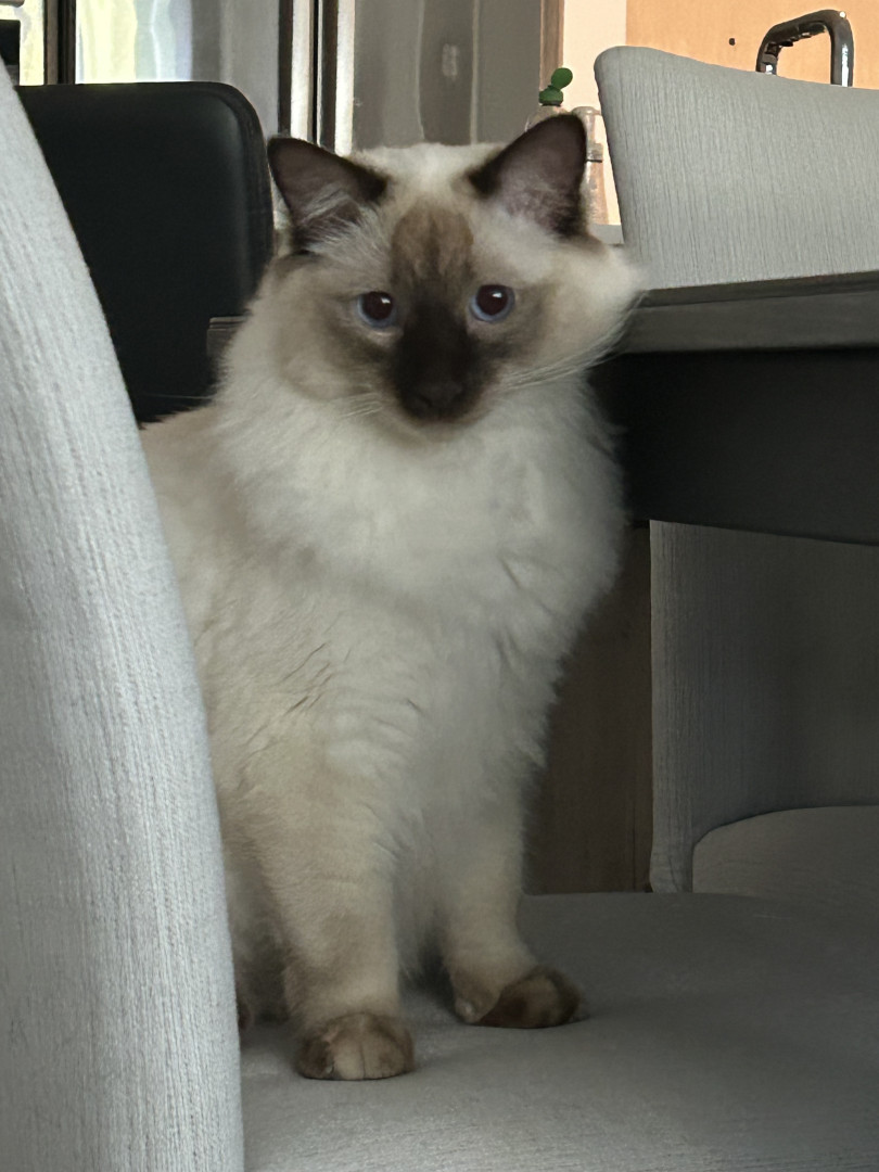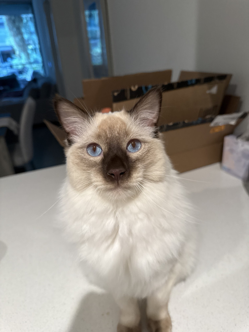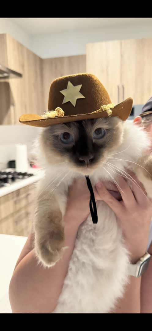 Odin’s most unique quality is his dog and even humanlike personality in a cat’s body. He greets us at the door every day, talks nonstop as if he’s part of every conversation, and forms deep, affectionate bonds with everyone he meets. Add in his obsession with food and his love for chasing crumpled pieces of paper, and Odin turns ordinary moments into constant joy.