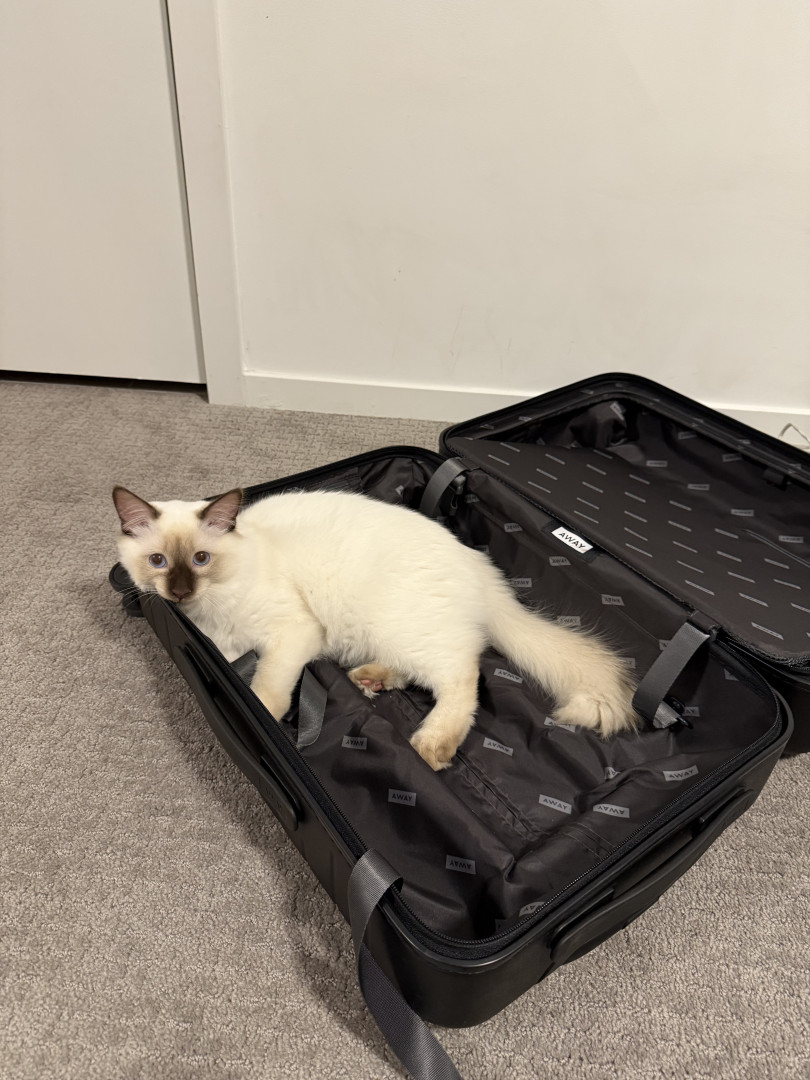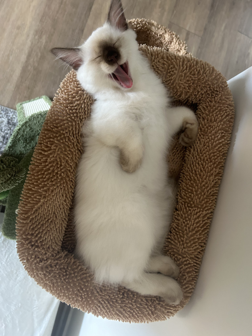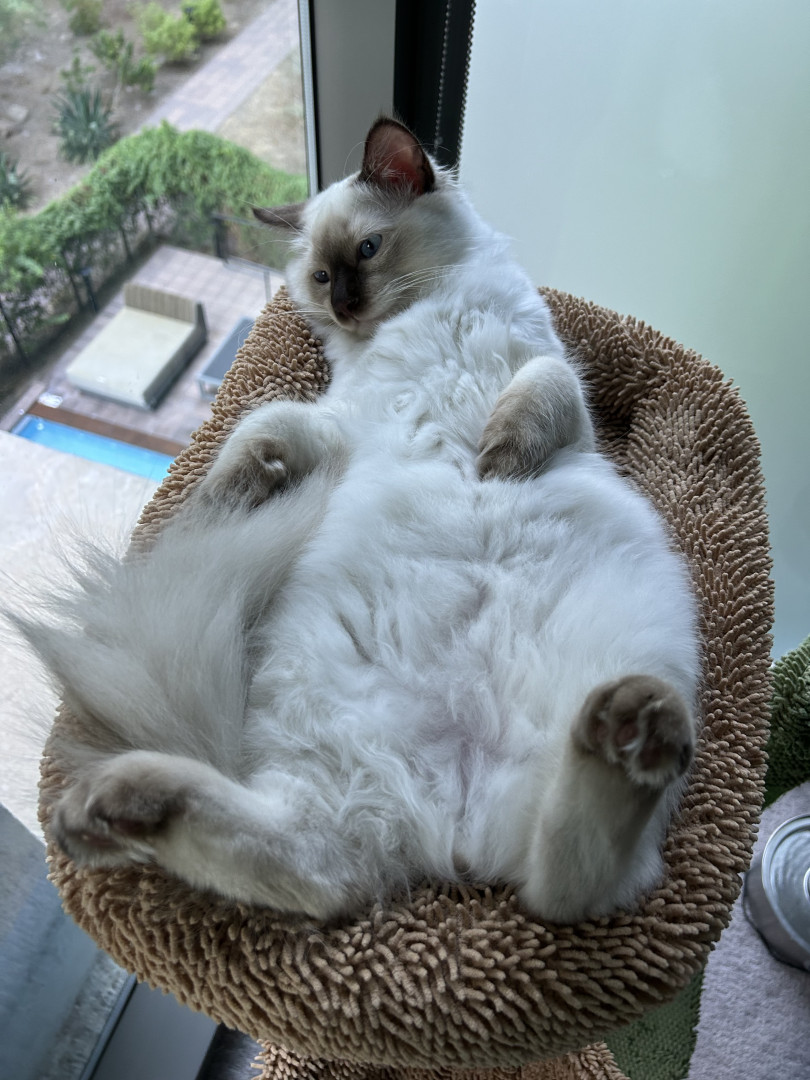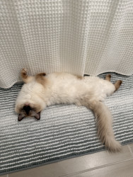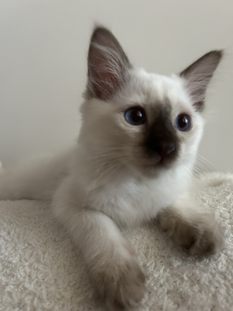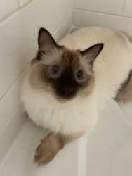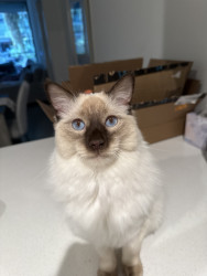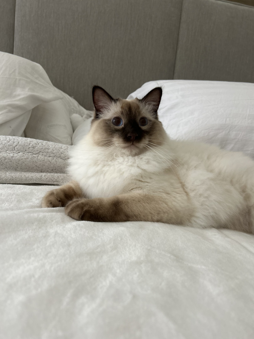 Odin’s most unique quality is his dog and even humanlike personality in a cat’s body. He greets us at the door every day, talks nonstop as if he’s part of every conversation, and forms deep, affectionate bonds with everyone he meets. Add in his obsession with food and his love for chasing crumpled pieces of paper, and Odin turns ordinary moments into constant joy.