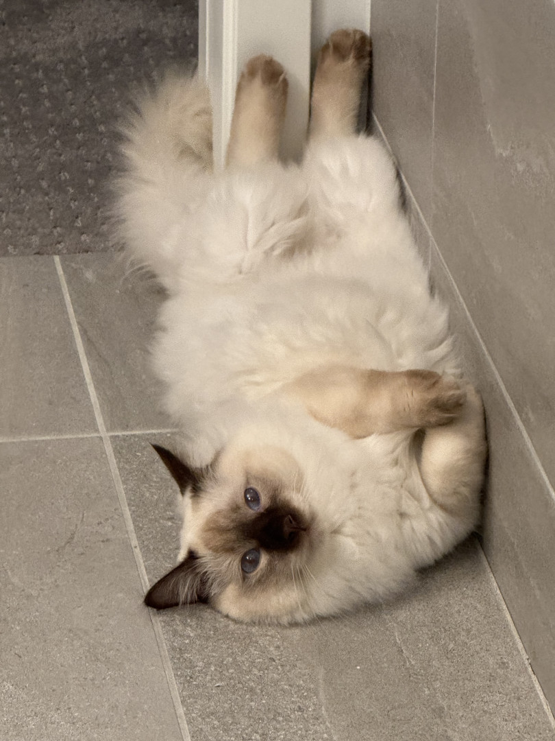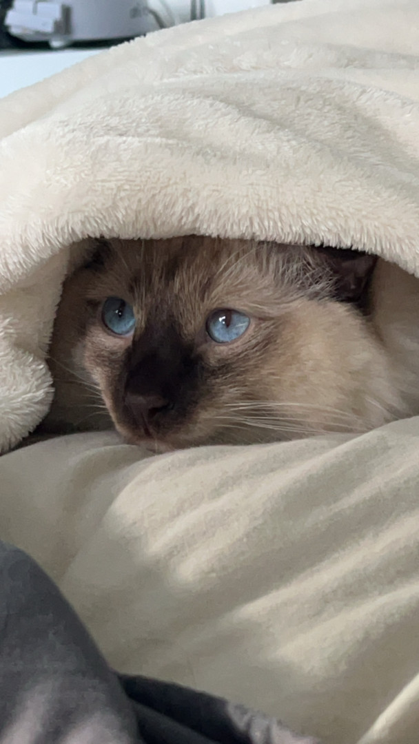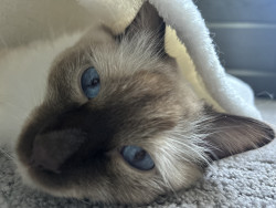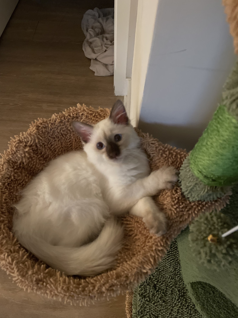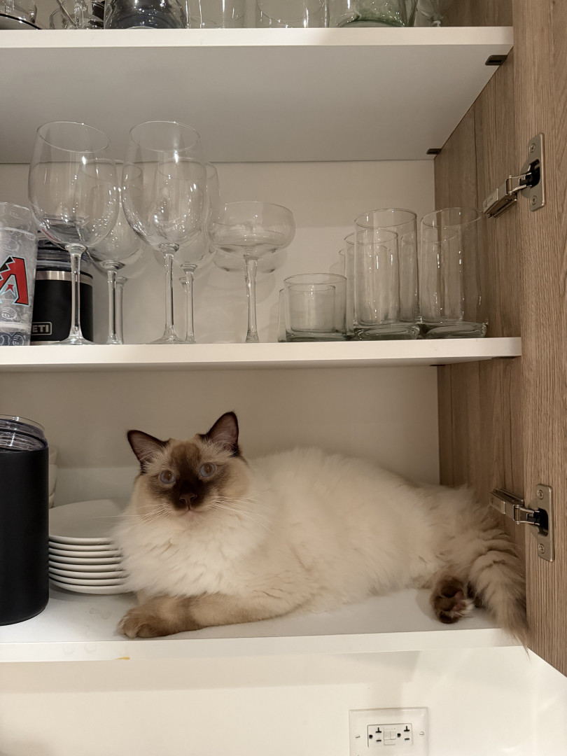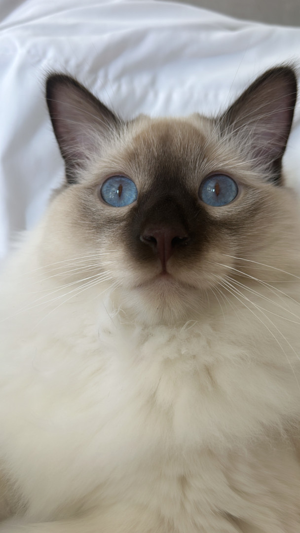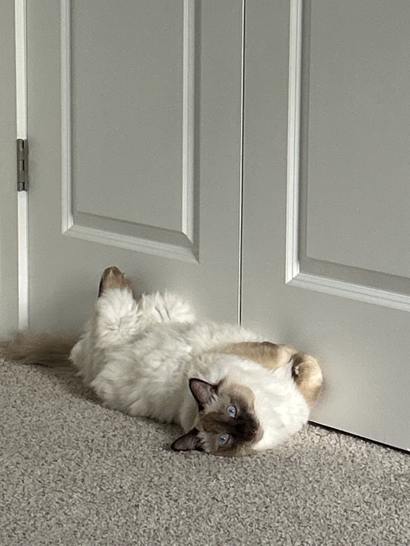 Odin’s most unique quality is his dog and even humanlike personality in a cat’s body. He greets us at the door every day, talks nonstop as if he’s part of every conversation, and forms deep, affectionate bonds with everyone he meets. Add in his obsession with food and his love for chasing crumpled pieces of paper, and Odin turns ordinary moments into constant joy.