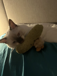 Learn MoreOdin loves his flapping bird the most, but he can truly turn anything into a toy. Odin’s dad works from home and will often crumple up pieces of paper for Odin to play fetch with, or he plays soccer with his dad’s stress ball. Odin’s favorite treats are any type of greenies & he loves to have churu when he gets manicures and pedicures. If Odin advances further in the competition we have some very funny videos of him GRIPPING the churu stick for dear life because he doesn’t want treat time to end