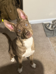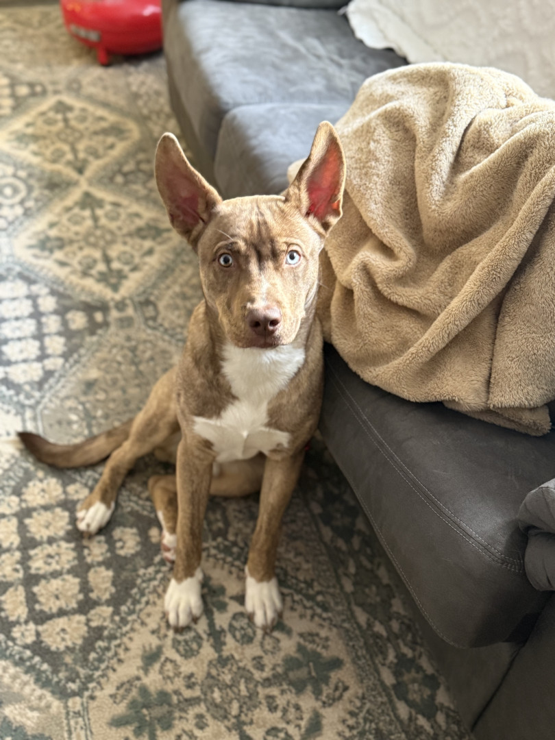 Once a shelter puppy, now the sweetest boy I know. At just 6 months old, this husky/pit mix is full of love, playfulness, and pure joy!
