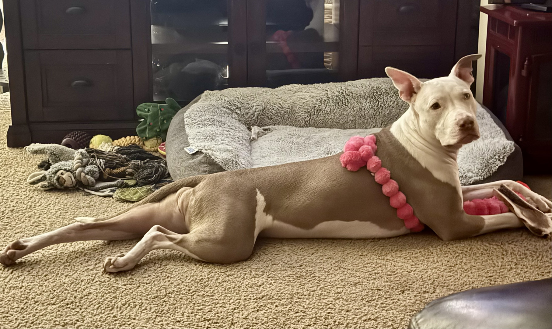 Learn MoreHer pink flamingo pictured w/ her is her current favorite toy & she loves duck jerky treats.