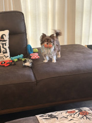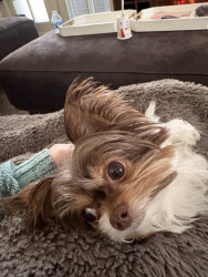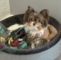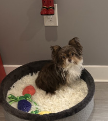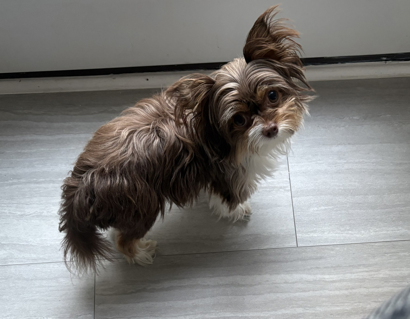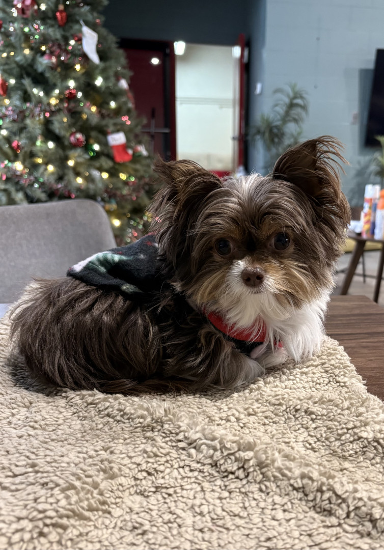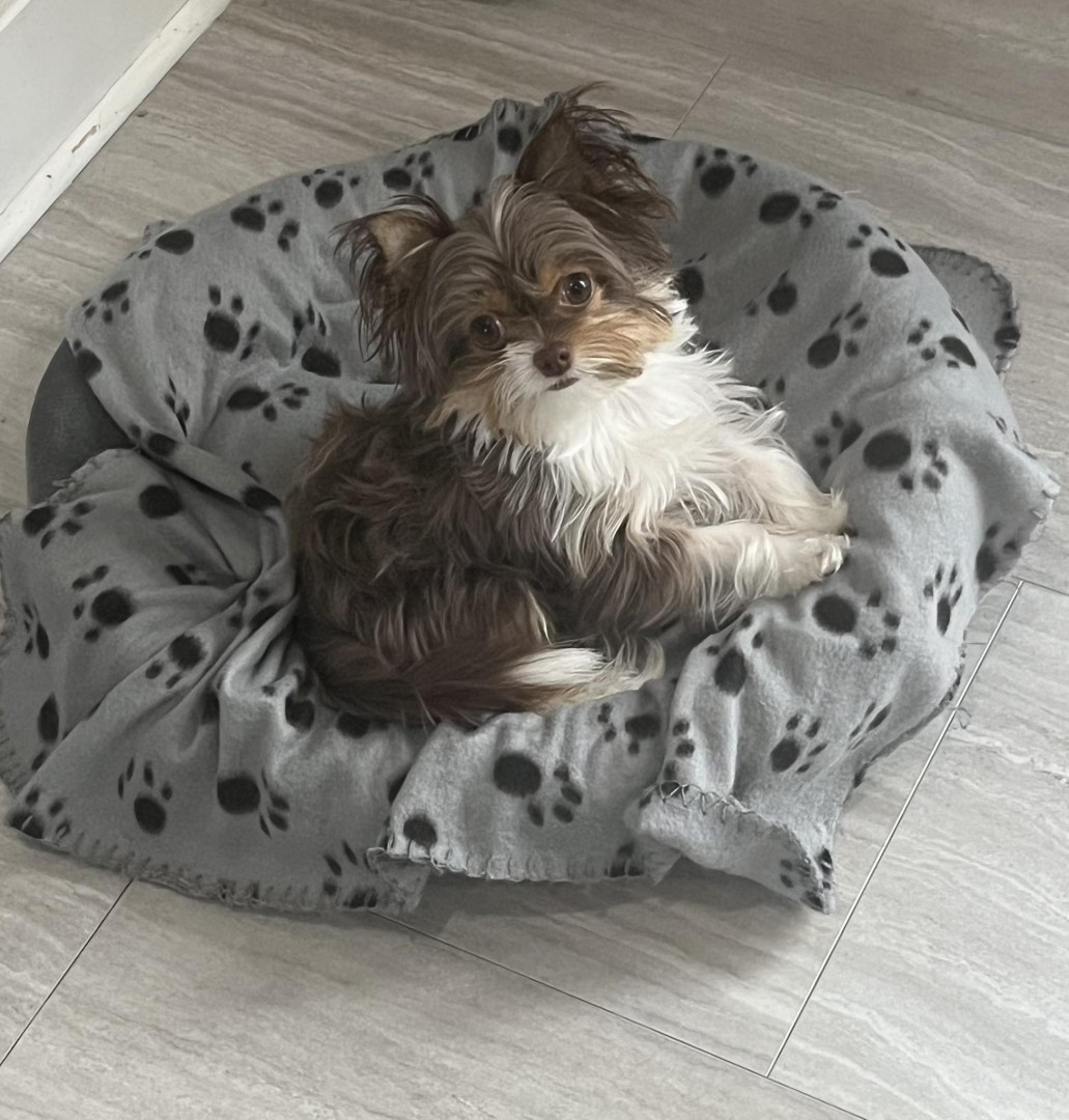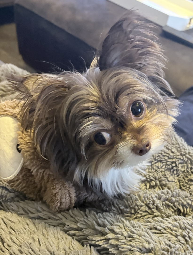 Oliver is a Yorkie mix! He was the runt of the litter. He had a liver defect when he was born, but it was repaired and he’s very healthy!