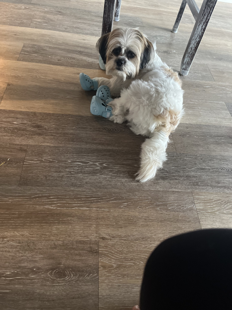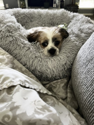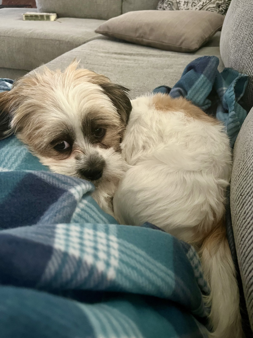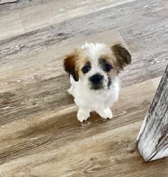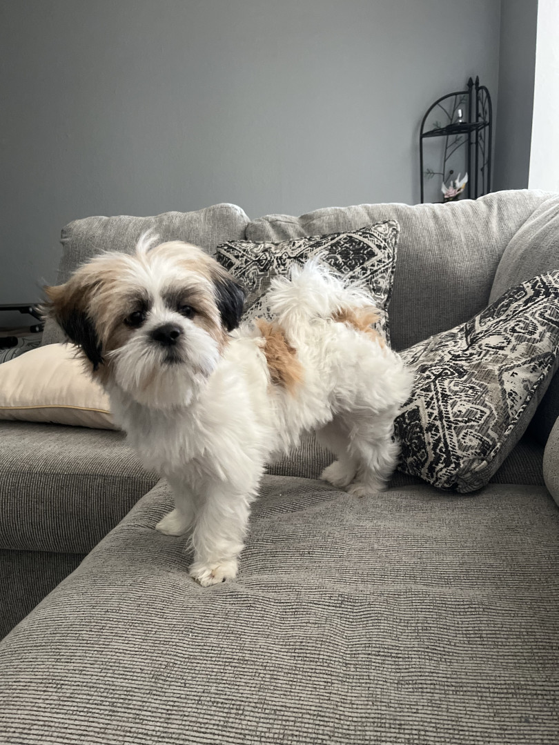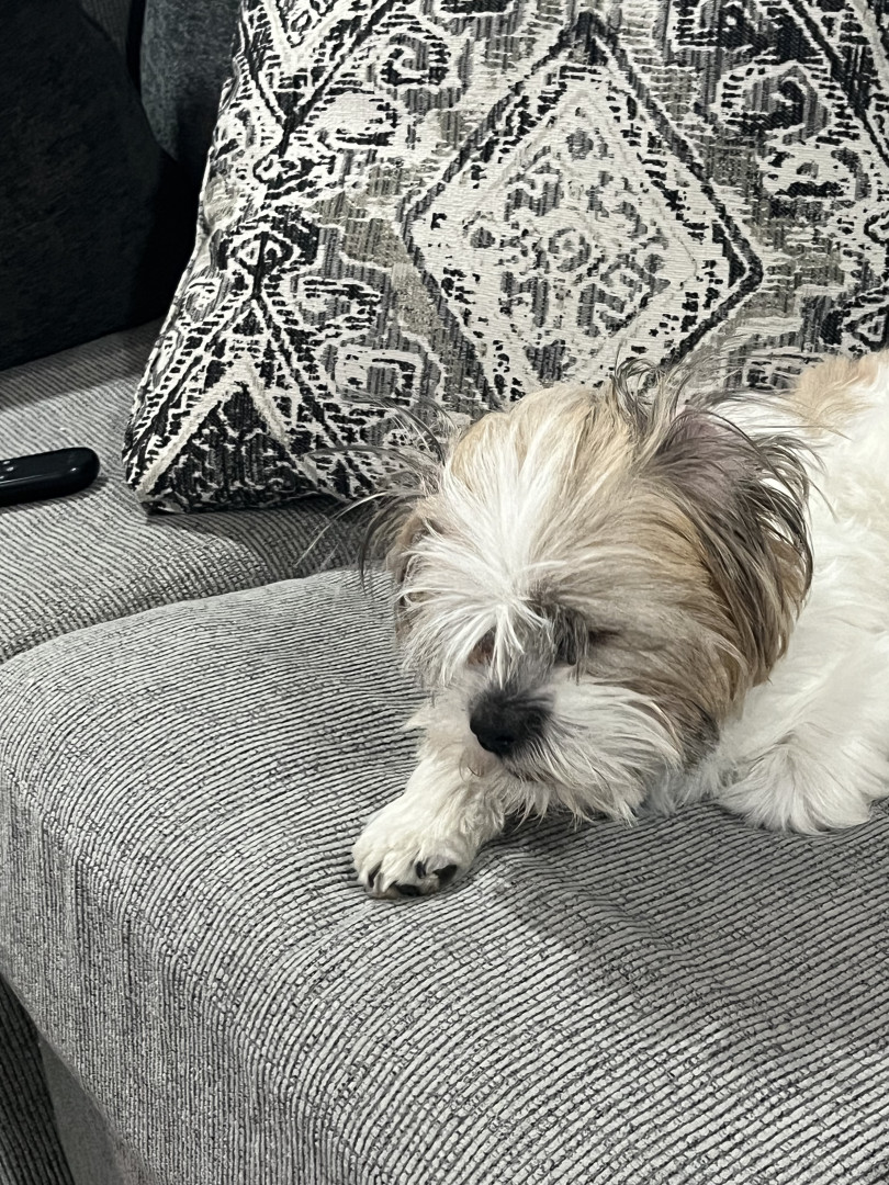 Smart; Maltese/ shitzu mix 9 mo is loving has a distinguished look eyes are outlined in black and has freckles