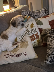 He stares into your eyes, he loves to pose for pictures…loves to go in between pillows, to position himself; can adjust quickly to strangers