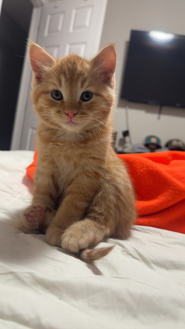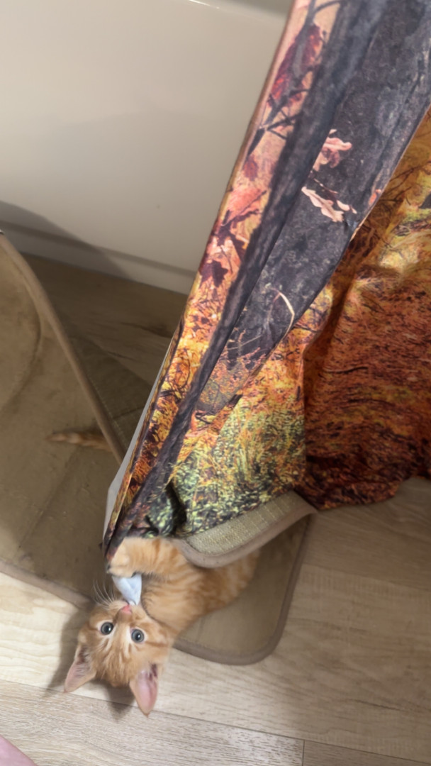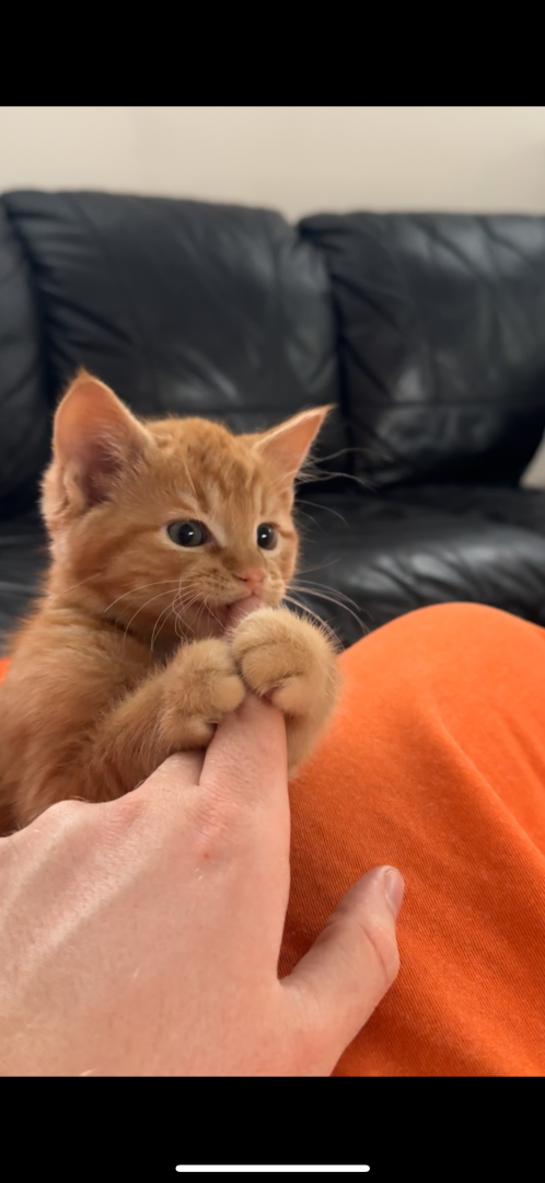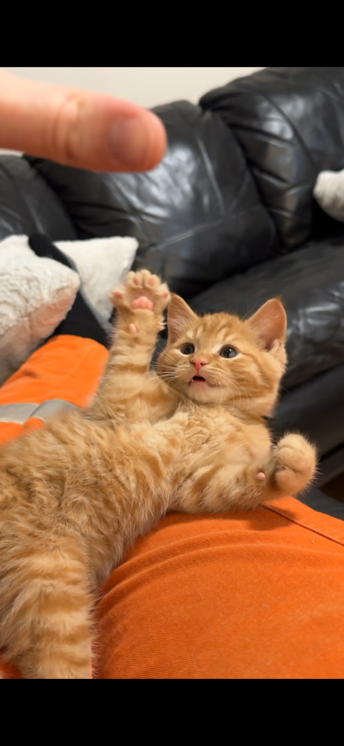 He’s orange and an absolute menace to any toy or hand/foot that wriggles his way